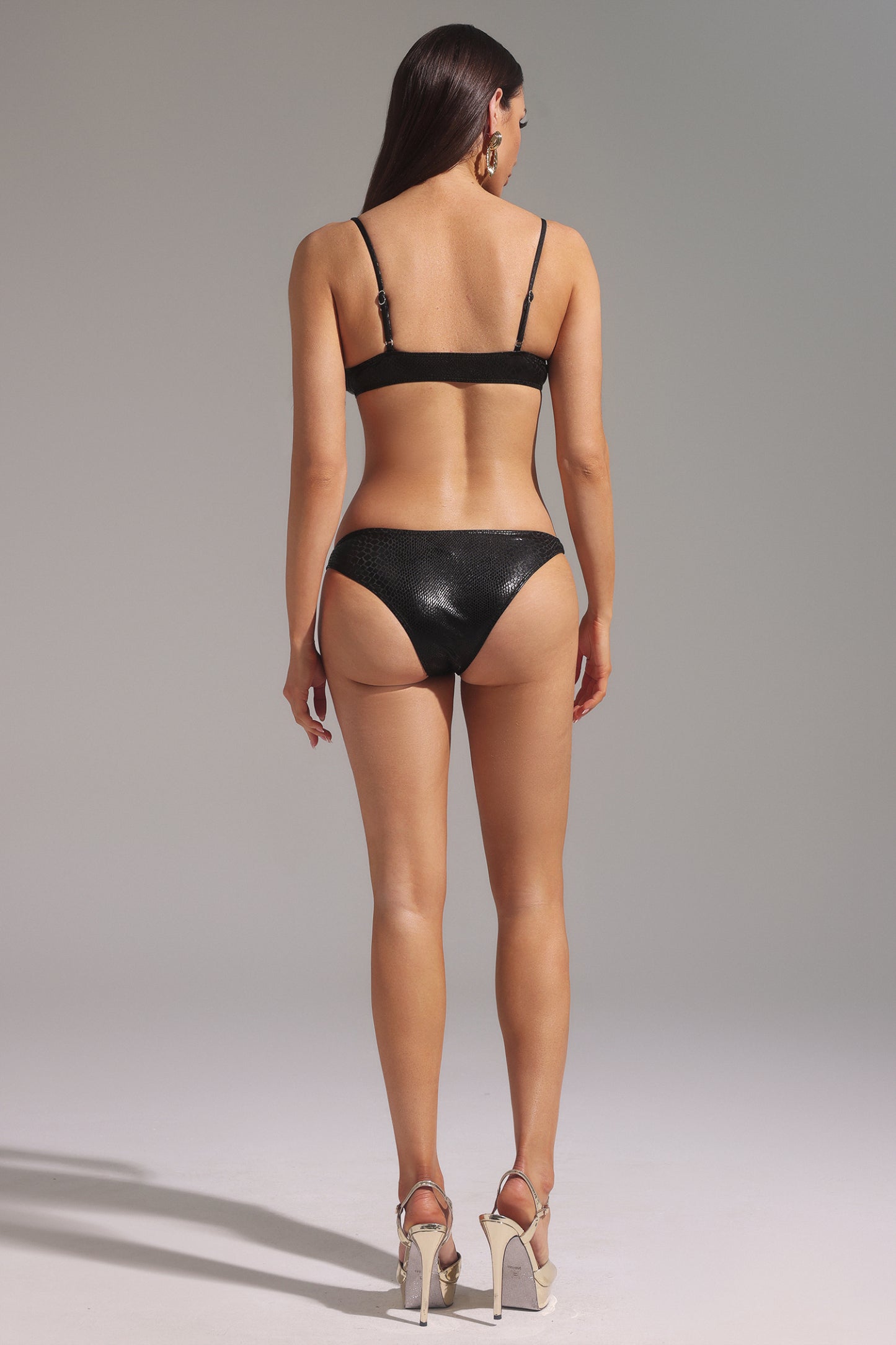 Bu özel üretim mayonuzu, hem gece havuz partilerinde hem de gündüz güneşin keyfini çıkarırken tercih edebilirsiniz. Asimetrik tasarımı ve zarif yılan derisi deseniyle, tüm gözler üzerinizde olacak.