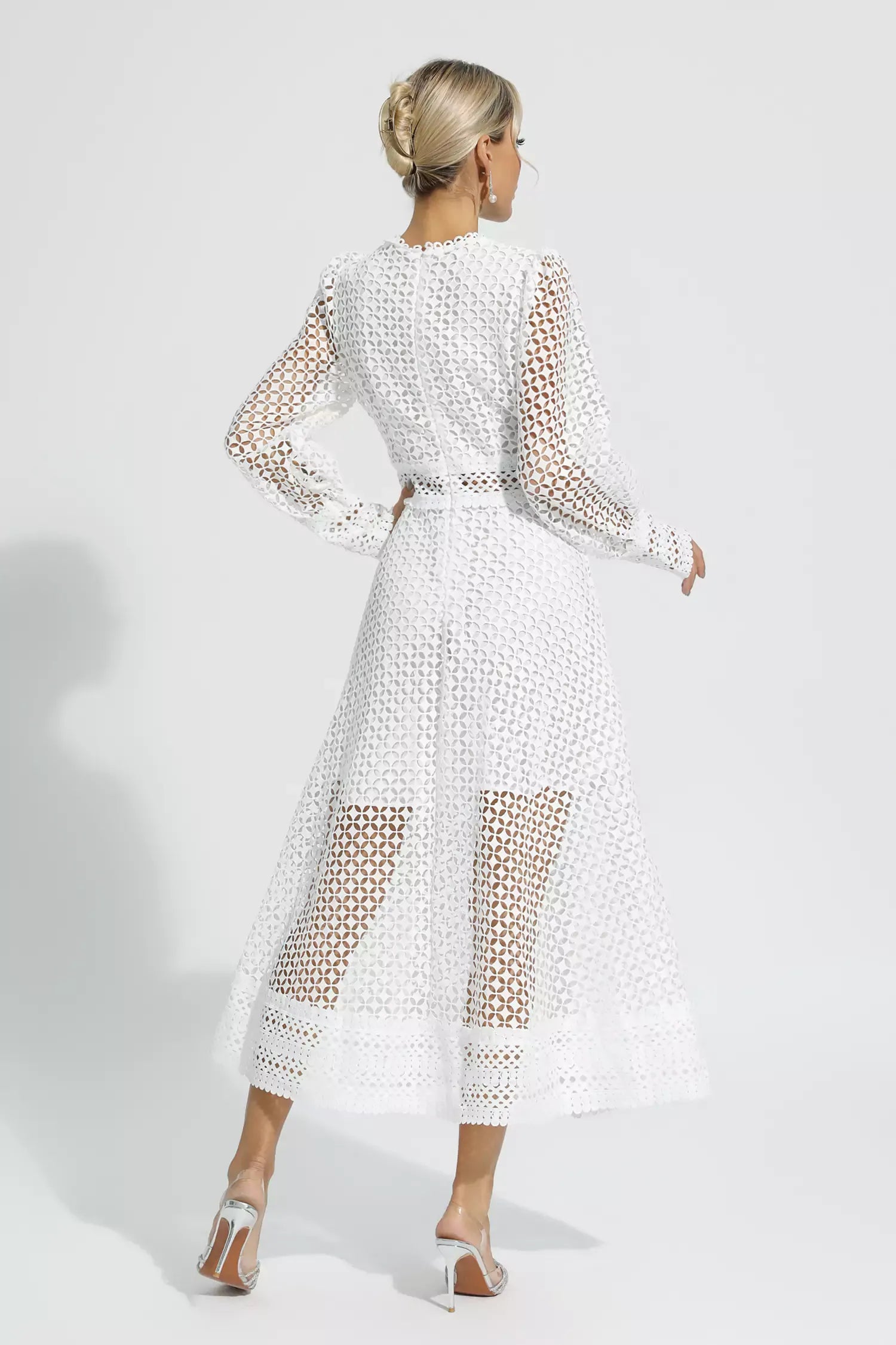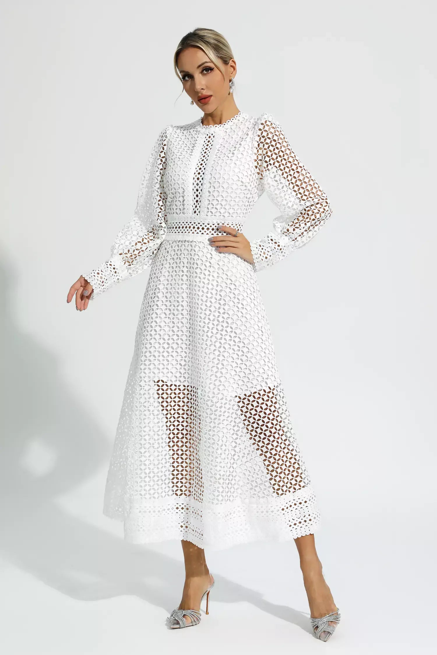 Monroe Beyaz Hollow Uzun Kollu Maksi Elbise