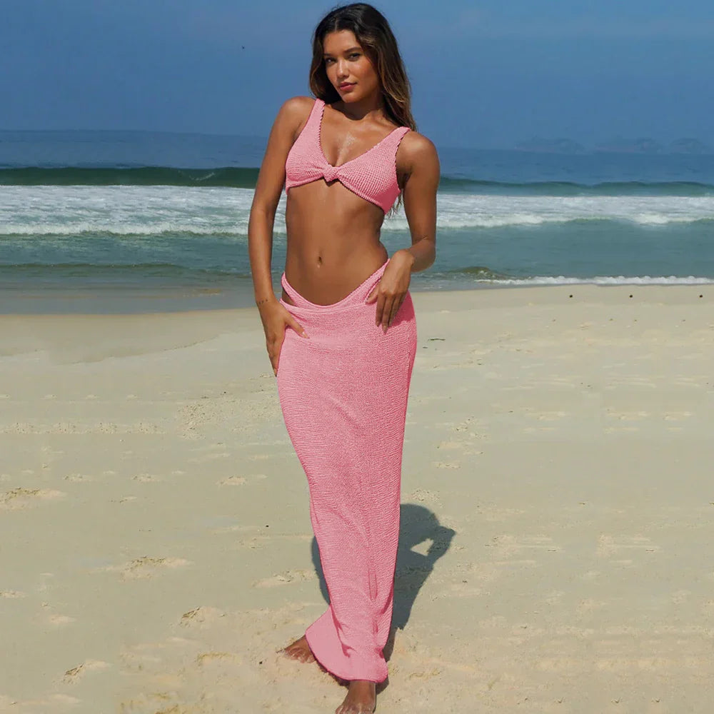 Tasarım: İki parçalı plaj seti – üst ve uzun etek