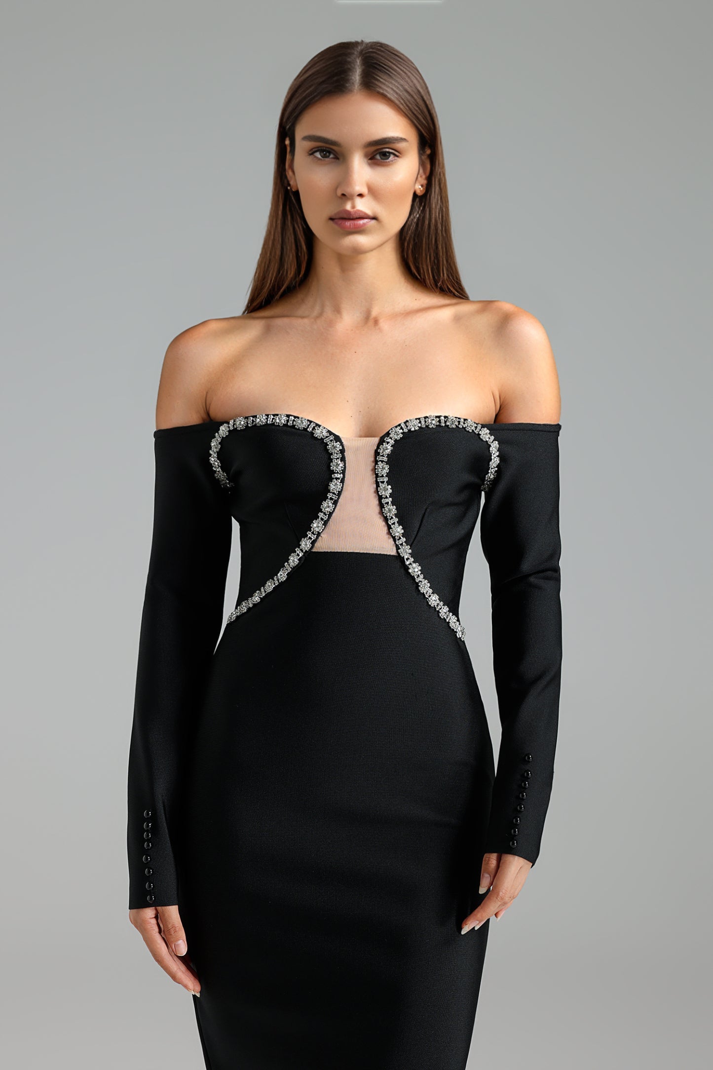 Nadja Uzun Kollu Omuz Açık Bandaj Midi Elbise ile zarif görünümünüze kusursuz bir dokunuş ekleyin. Bu elbise, orta boy uzunluğu ve omuzları açıkta bırakan kesimiyle dikkat çekici bir siluet oluşturur. Ürün, esnek bandaj kumaşı sayesinde vücut hatlarınıza mükemmel uyum sağlar ve konforlu bir kullanım sunar.