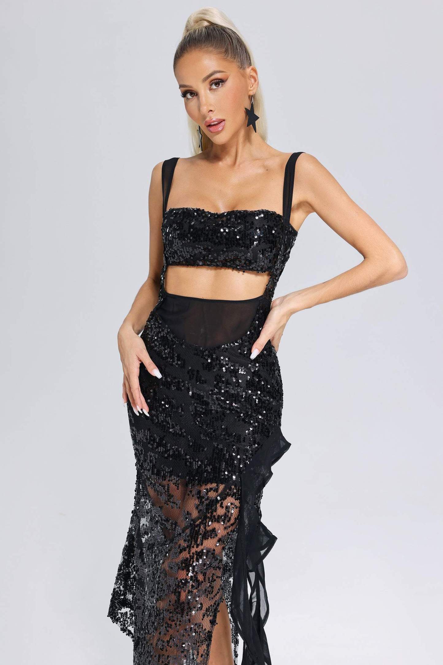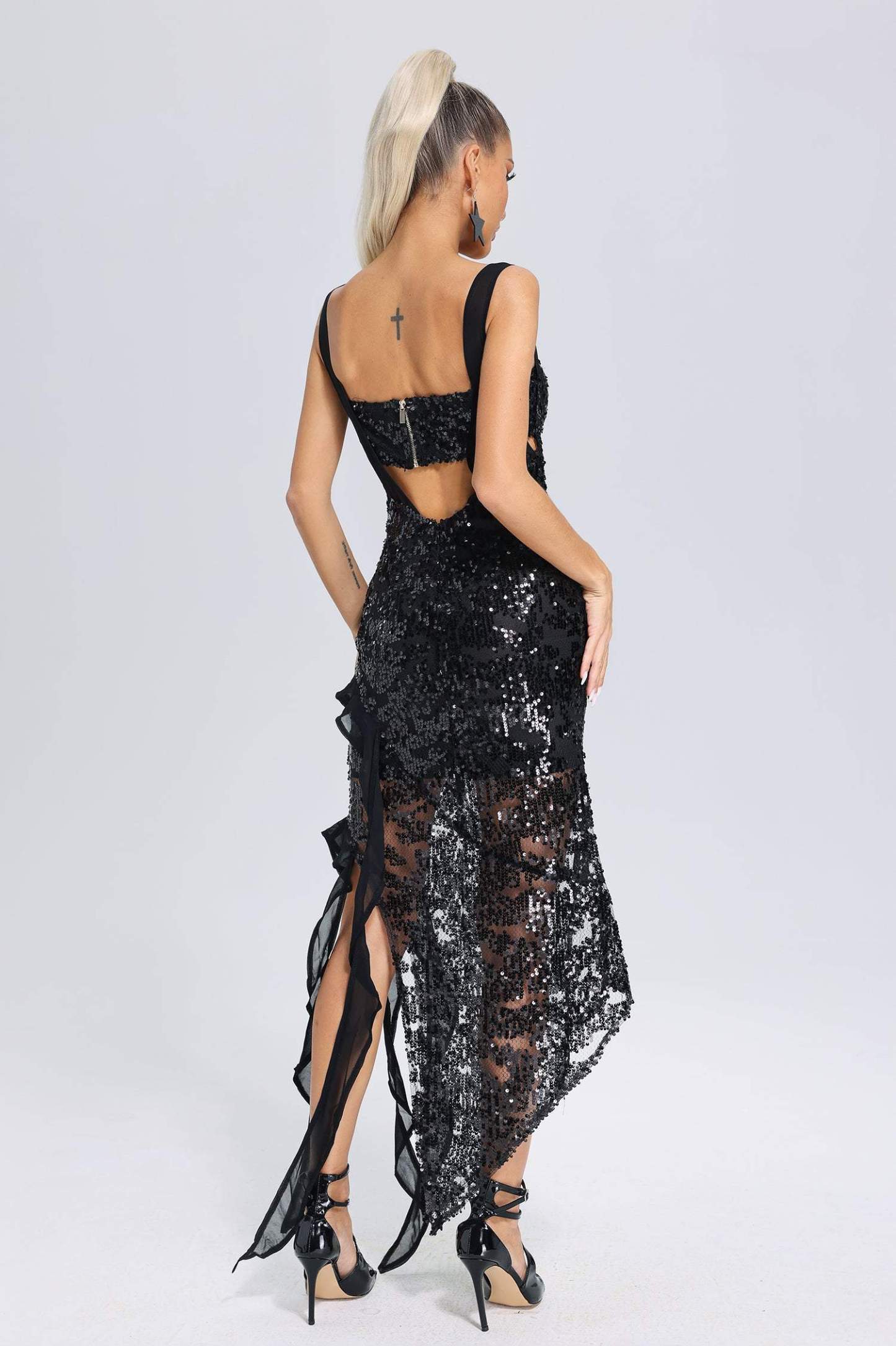 Niavia Pullu Volanlı Midi Elbise ile ışıltınızı tüm gece koruyun. Özel davetler ve özel günler için ideal olan bu elbise, %92 polyester ve %8 spandeks karışımı sayesinde hem dayanıklı hem de esnek bir yapı sunar. Zarif pullar ve volan detayları ile göz alıcı bir görünüm sağlayan bu midi boy elbise, rahatlık ve şıklığı bir arada sunuyor.