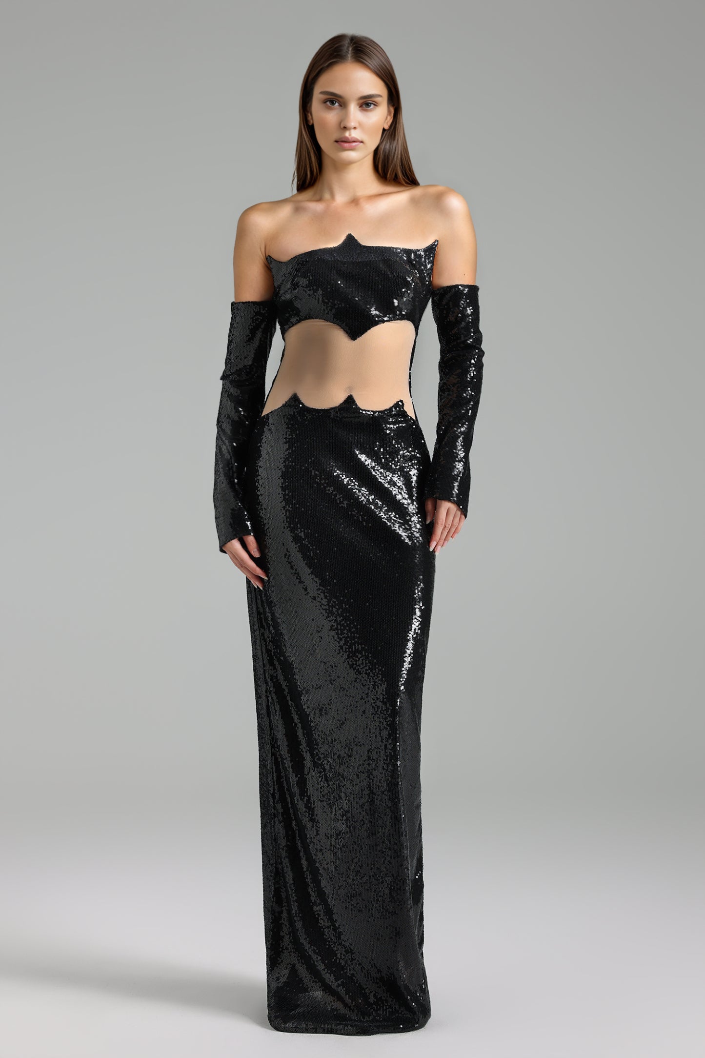 Nico Omuz Açık Payetli Uzun Elbise ile ışıltınızı tüm gece koruyun. Özel günlerinizde, davetlerde veya bir gece çıkışında, bu elbise ile tüm gözler üzerinizde olacak. Omuzları açık tasarımı ve boydan boya süslenmiş payet detayları ile modern ve şık bir görünüm sunar.