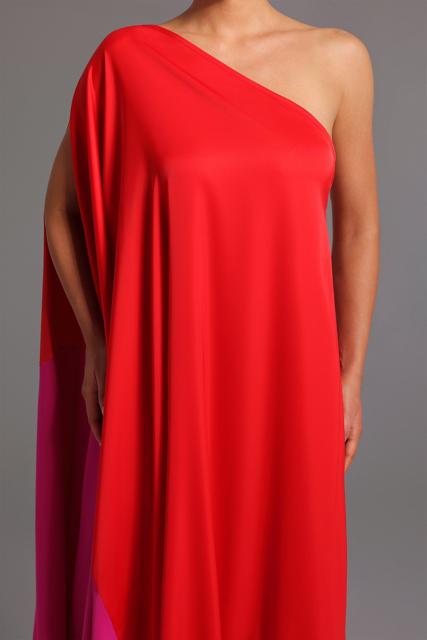 Ninamo Tek Omuzlu Saten Uzun Elbise