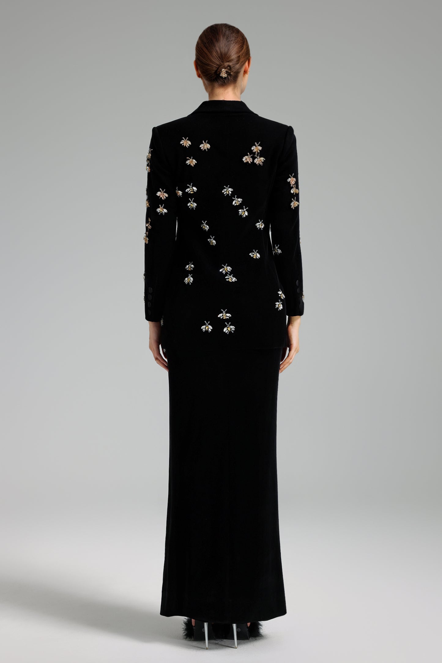 Ohney Kadife Orta Boy Takım Ceketi ile zarafeti her anınıza taşıyın. Özel üretim bu takım ceket, orta boy kesimi ve yumuşak kadife dokusuyla konfor ve şıklığı bir arada sunar. Modelimiz S beden giymekte ve 167 cm boyunda, 82 cm göğüs, 86 cm kalça, 65 cm bel ölçülerine sahiptir.