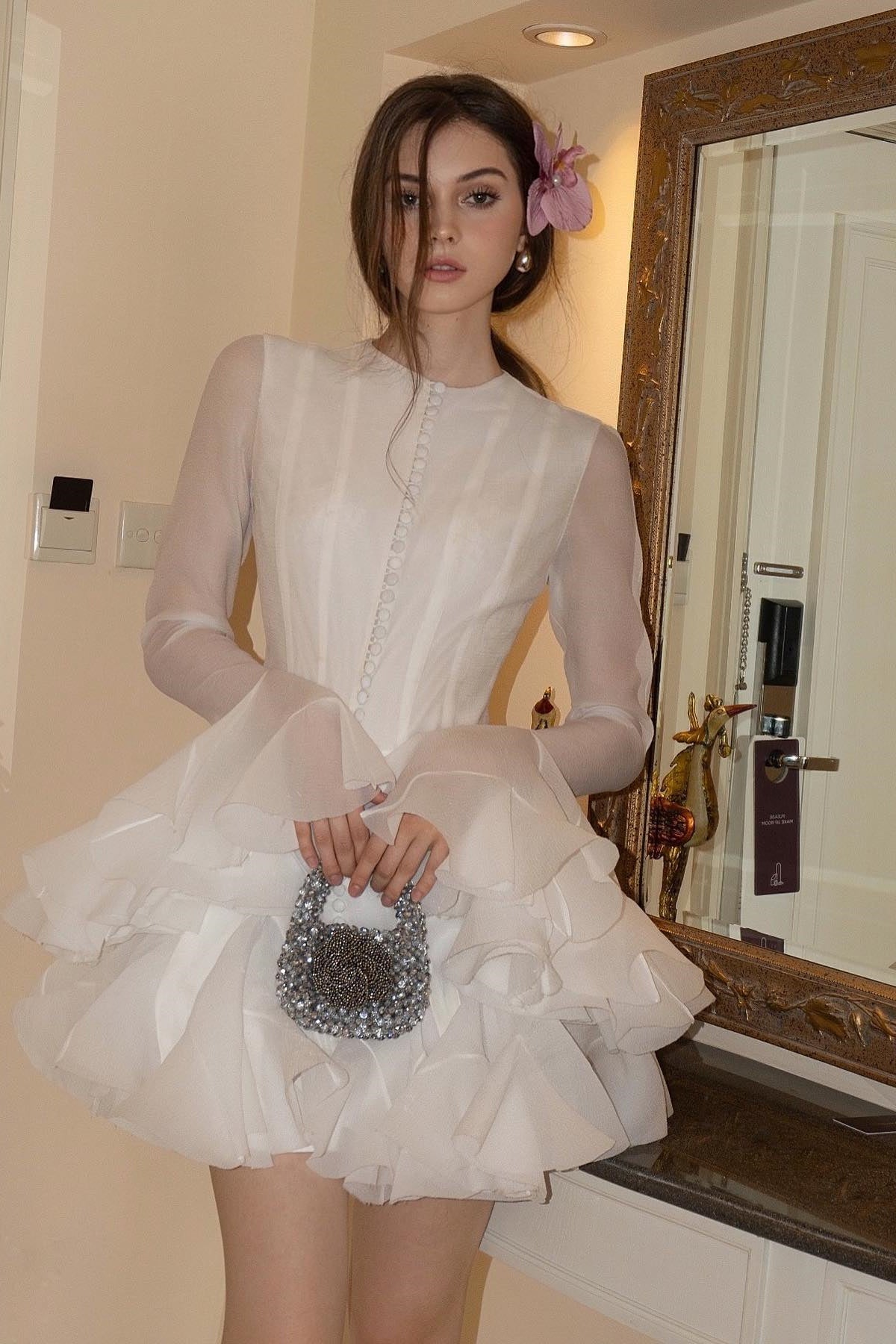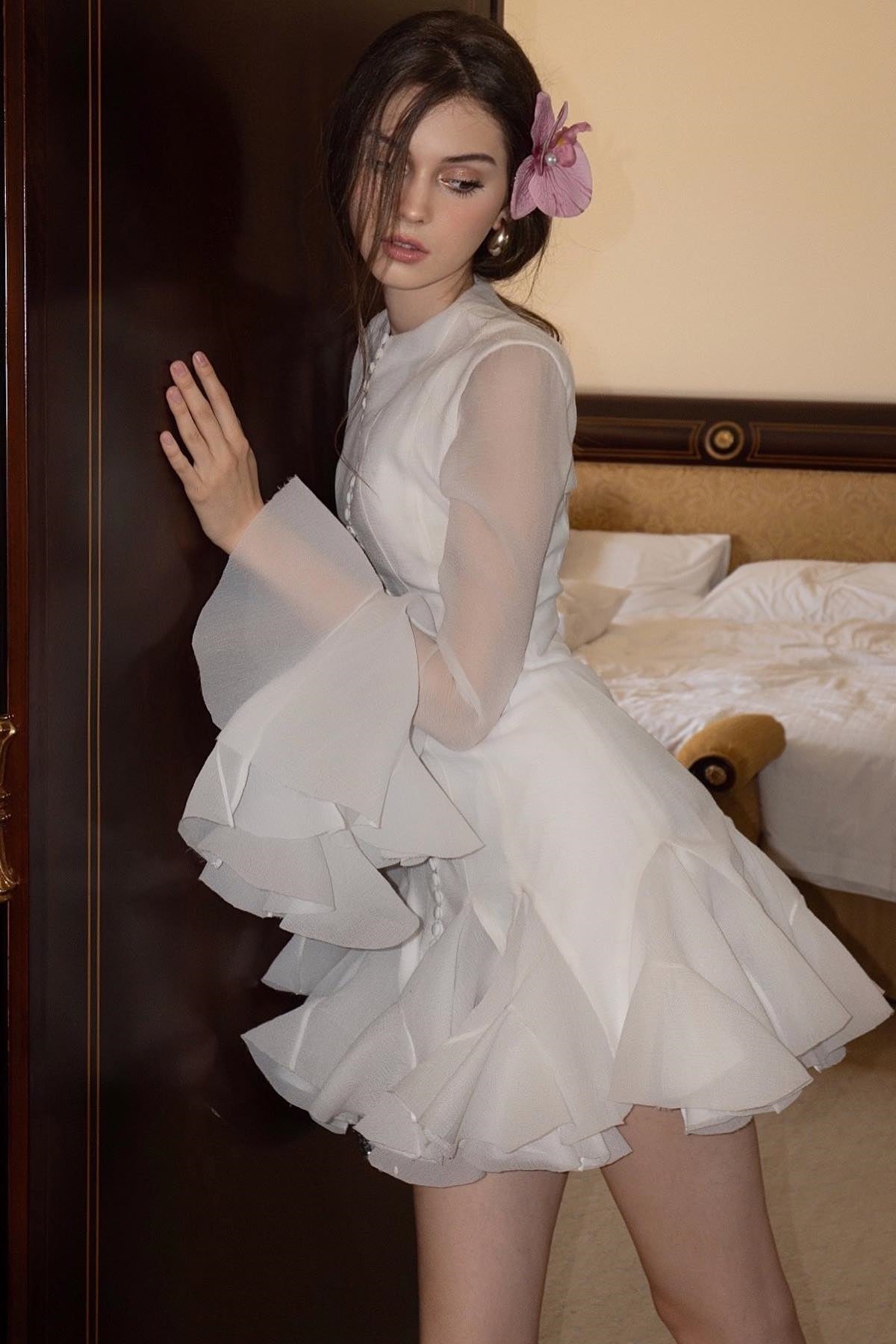 Uzun Kollu, Yuvarlak Yaka, Fırfırlı Kol Manşetleri, Fırfırlı Etek, Yarı Şeffaf Yapı, Mini Boy.