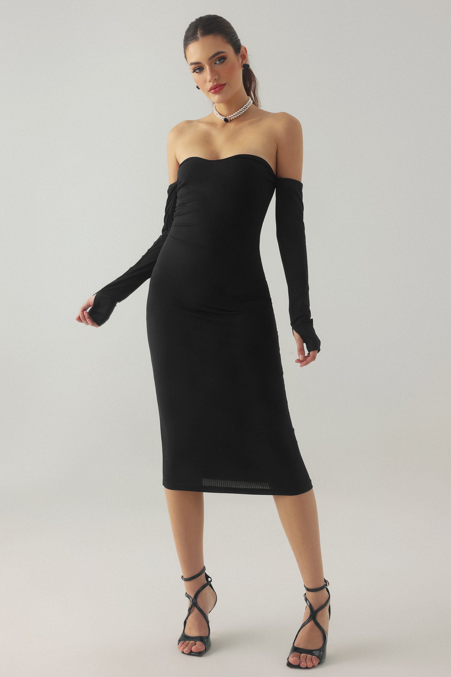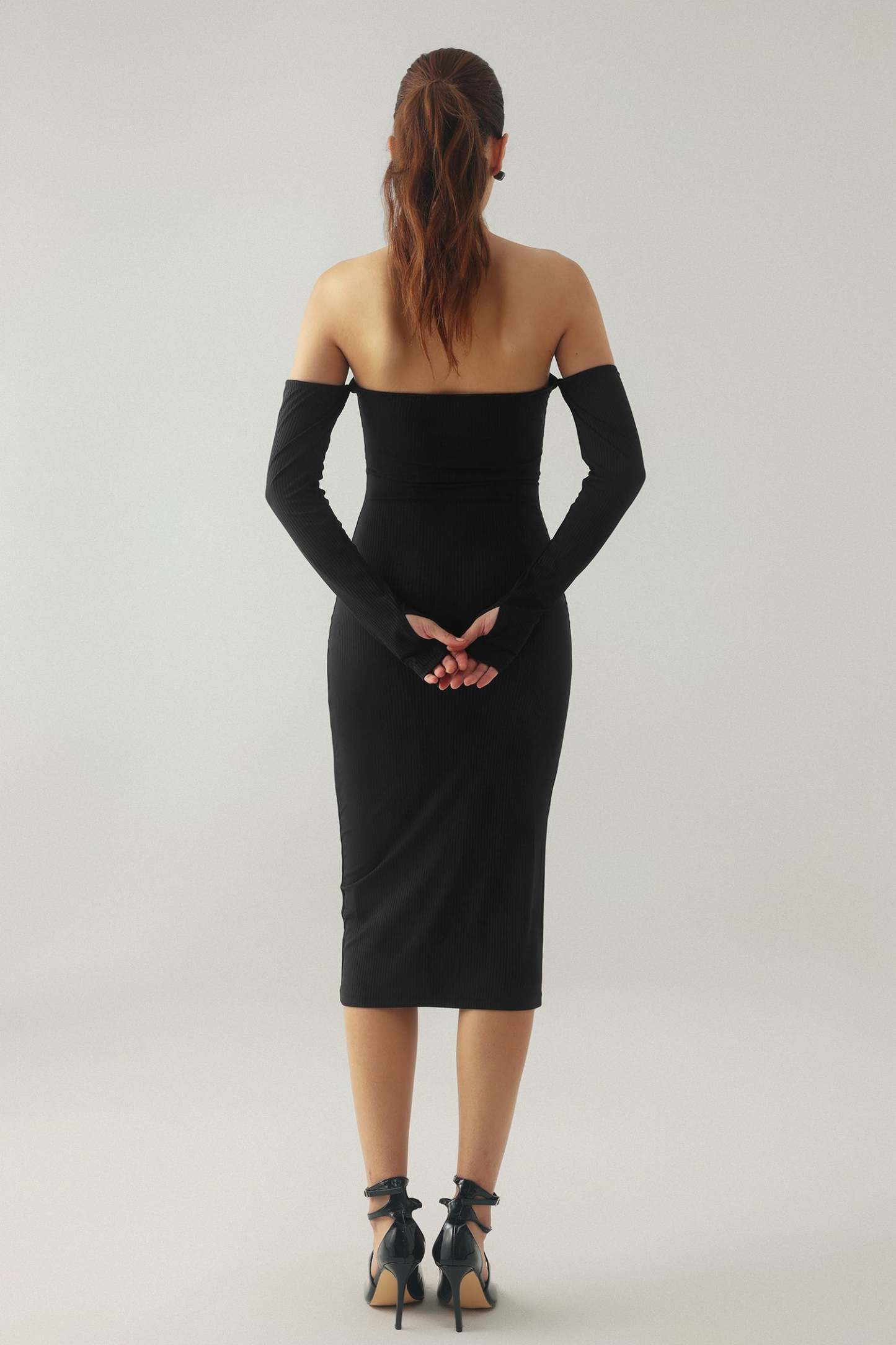 Ona Tüp Örgü Midi Elbise kişisel stilinizi zarif bir şekilde vurgulamak için tasarlanmıştır. Polyester ve spandeks karışımı bu elbise, vücudu saran yapıda olup, esnek kumaşı sayesinde gün boyu konfor sunar. Dolabınızda özel günler için vazgeçilmez bir yer edinecek.
