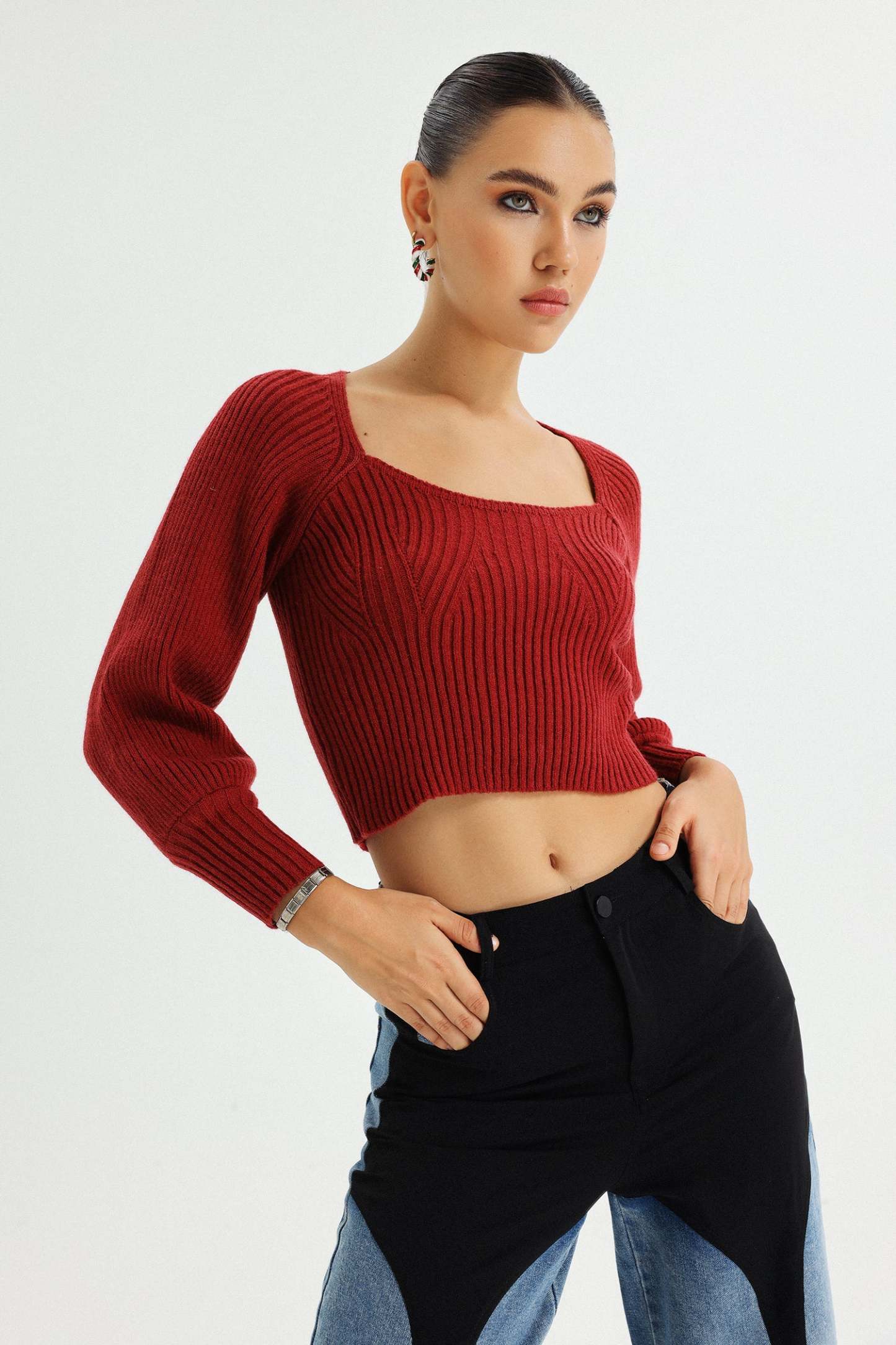 Bu şık kazak, zarif kare yaka kesimiyle gündelik kullanımdan özel davetlerde rahatlıkla tercih edilebilir. Renk tonları, çekimlerdeki ışıklandırmaya bağlı olarak değişiklik gösterebilir. Ürün, boyut tablomuza uygun olarak kesimlidir ve en iyi uyumu sağlamak için boyut tablomuzu incelemenizi öneririz.