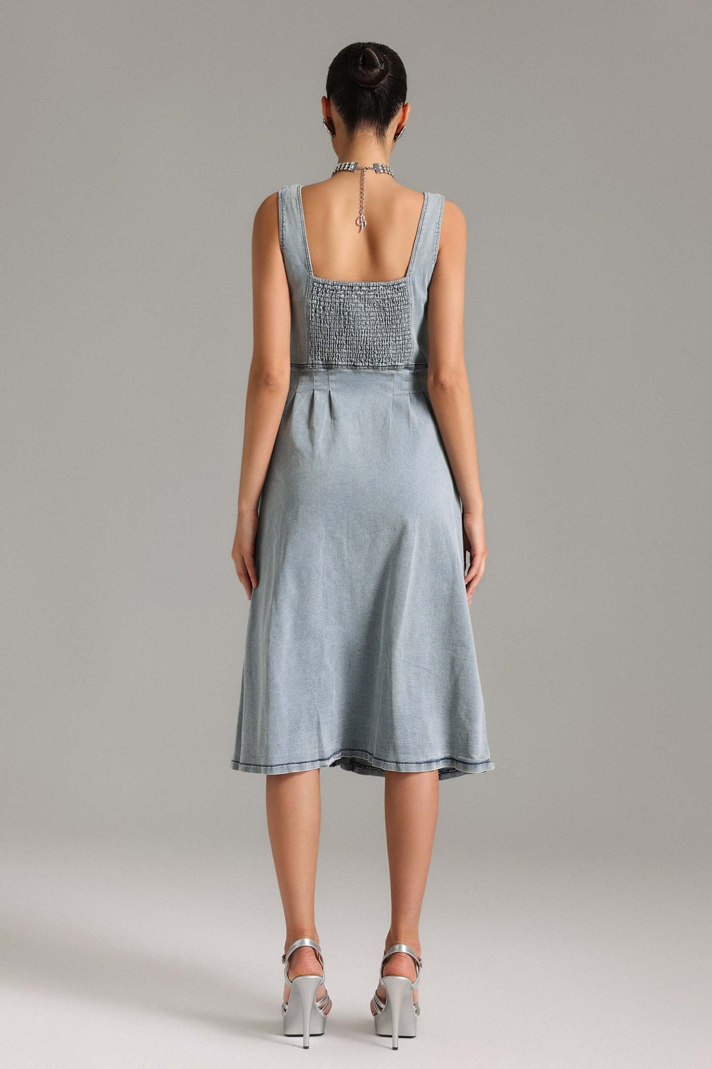 Kolsuz Denim Midi Elbise son derece zarif ve kullanışlı bir tasarıma sahiptir. Bu şık midi elbisemiz, özellikle günlük kullanımlar ve rahatçe şıklığınızı korumak istediğiniz davetler için idealdir. Polyester kumaş yapısı sayesinde esnekliği ve konforu bir arada sunarken, makinede yıkanabilme özelliği ile de pratik bir kullanım sağlar.
