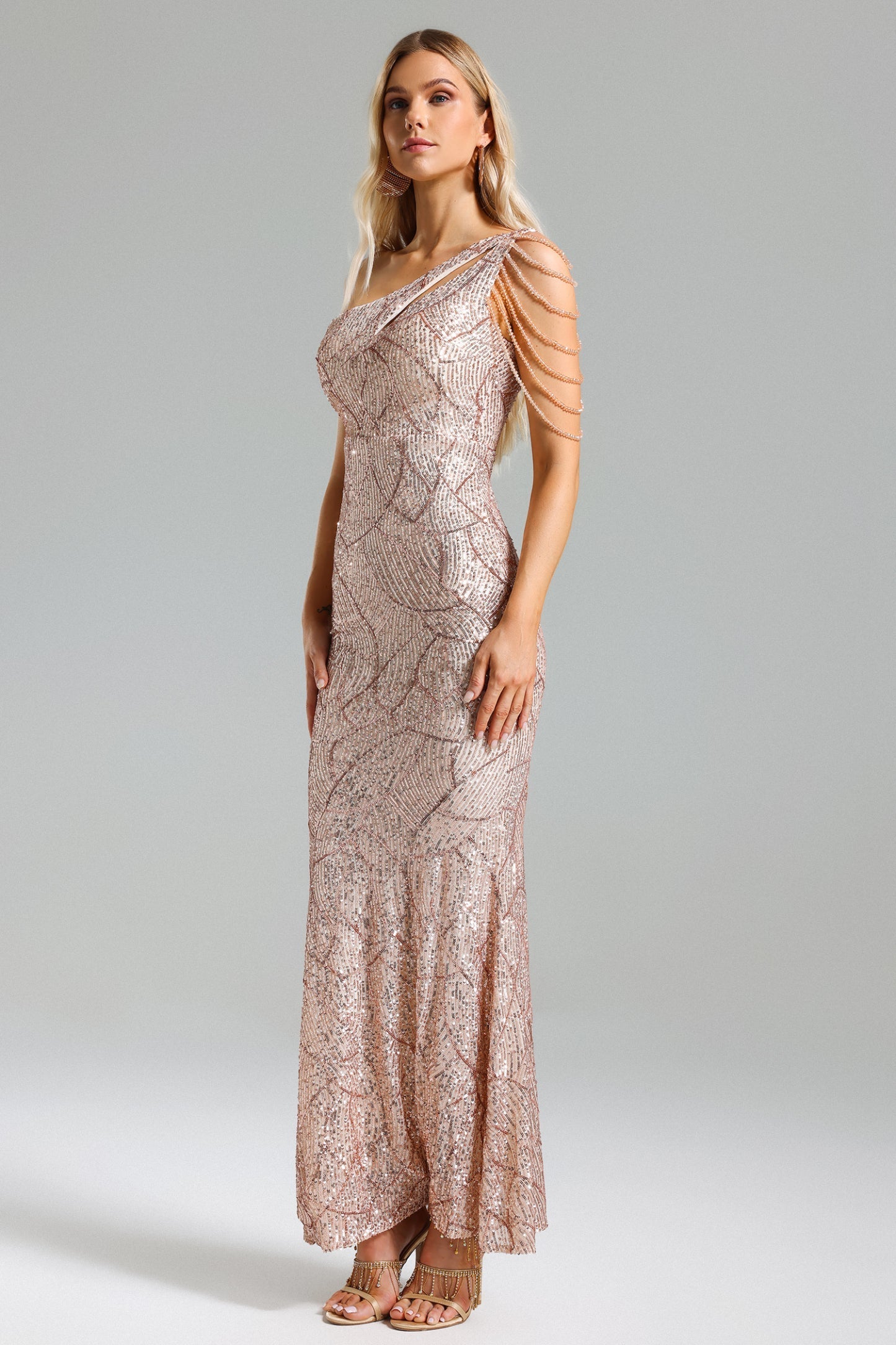 Paza Payetli Tek Omuz Uzun Elbise, özel geceleriniz için tasarlandı. Göz kamaştırıcı payet detayları ile tek omuz tasarımı, bu elbiseyi hem şık hem de iddialı kılıyor. Ürün, vücut hatlarınıza mükemmel uyum sağlayacak şekilde tasarlanmış olup, boy ölçünüze uygun en iyi kalıbı sunar.