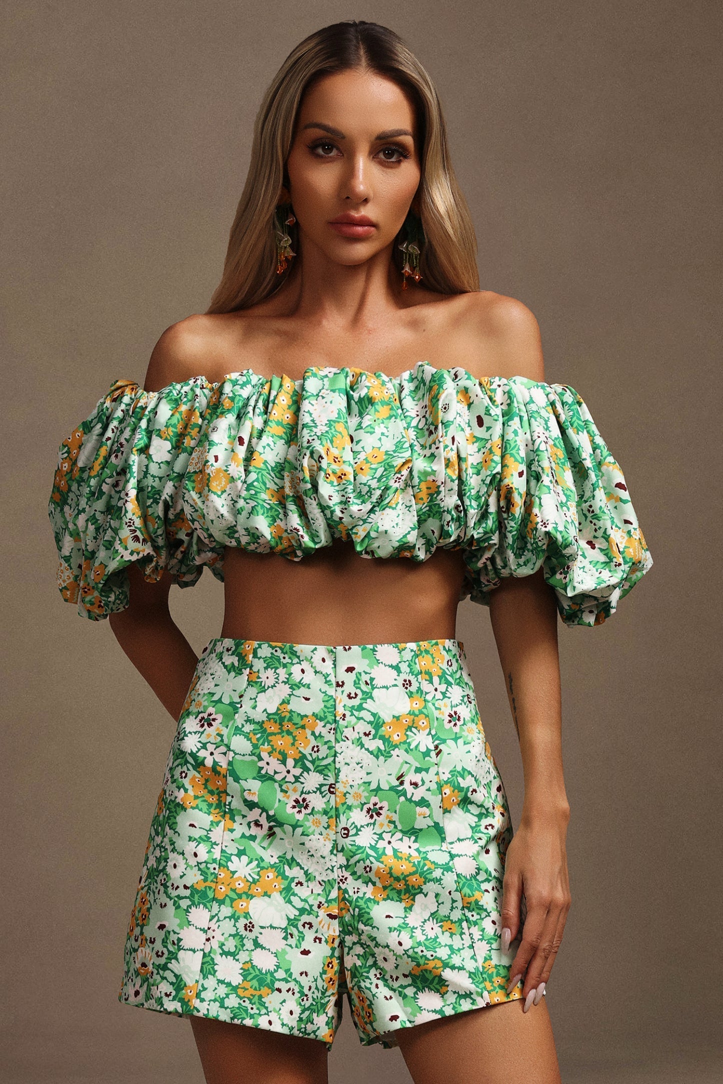 Bu yazı sezonun vazgeçilmezi olacak Petra Çiçek Desenli Volanlı Üst ve Şort Takım ile tüm gözler üzerinizde! Modelimiz S beden giymekte ve 174 cm boyunda, 89 cm göğüs, 95 cm kalça, 64 cm bel ölçülerine sahiptir. Ürün renkleri ışıklandırmaya bağlı olarak farklılık gösterebilir.