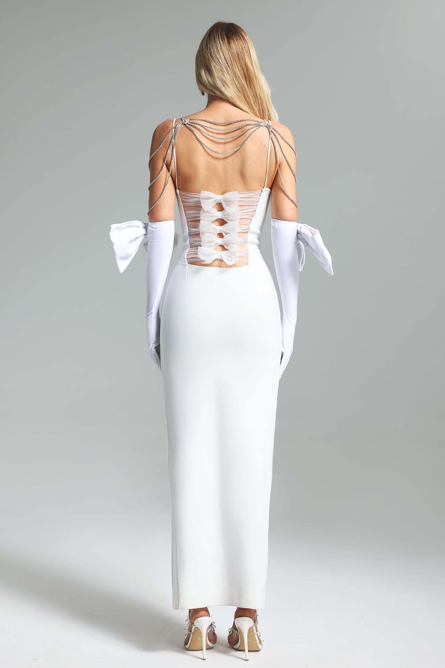 Tasarım detayları arasında parlak taş işlemeler ve zincirli omuz askıları yer alır, bu detaylar sizi davetlerde ve özel akşamlarda ışıltılı bir yıldız gibi ön plana çıkarır. Ürünümüz boyut tablosuna sadık kalınarak tasarlanmıştır. En iyi uyumu sağlamak için beden tablomuza göz atmayı unutmayın.