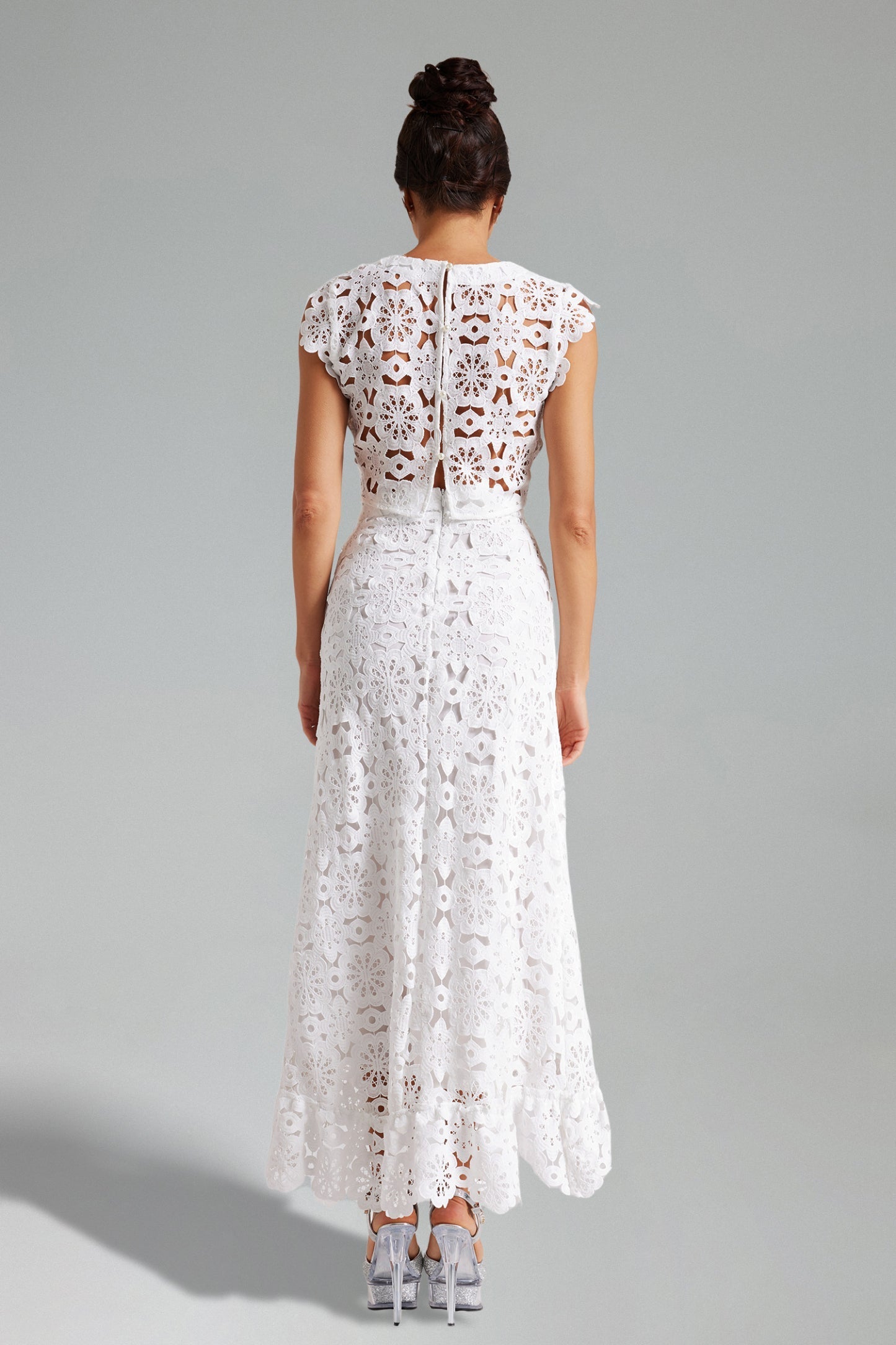 Beyaz Polasa Yan Yırtmaçlı Dantel Takım ile zarafeti kökünden keşfedin! Bu özel üretim takım, detaylı çiçek danteli tasarımı ile zarafeti ve feminenliği bir araya getirir. İnce işçilikle hazırlanan üst parça ve şık yan yırtmaçlı eteği ile hem zarif hem de modern bir görünüm sunar. Basit takılar ve ince bantlı sandaletlerle kombinleyerek sofistike fakat rahat bir stil yaratabilirsiniz.
