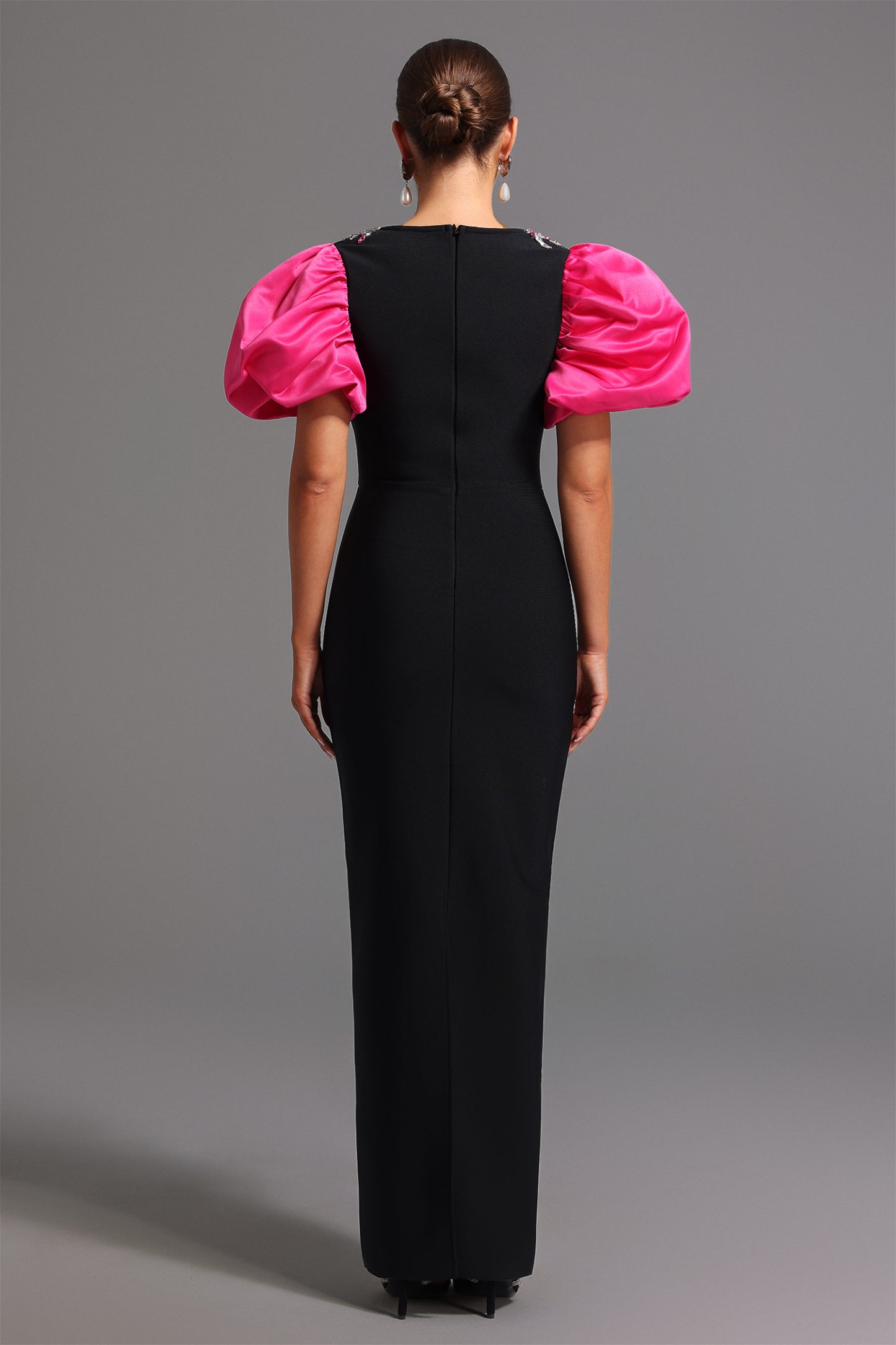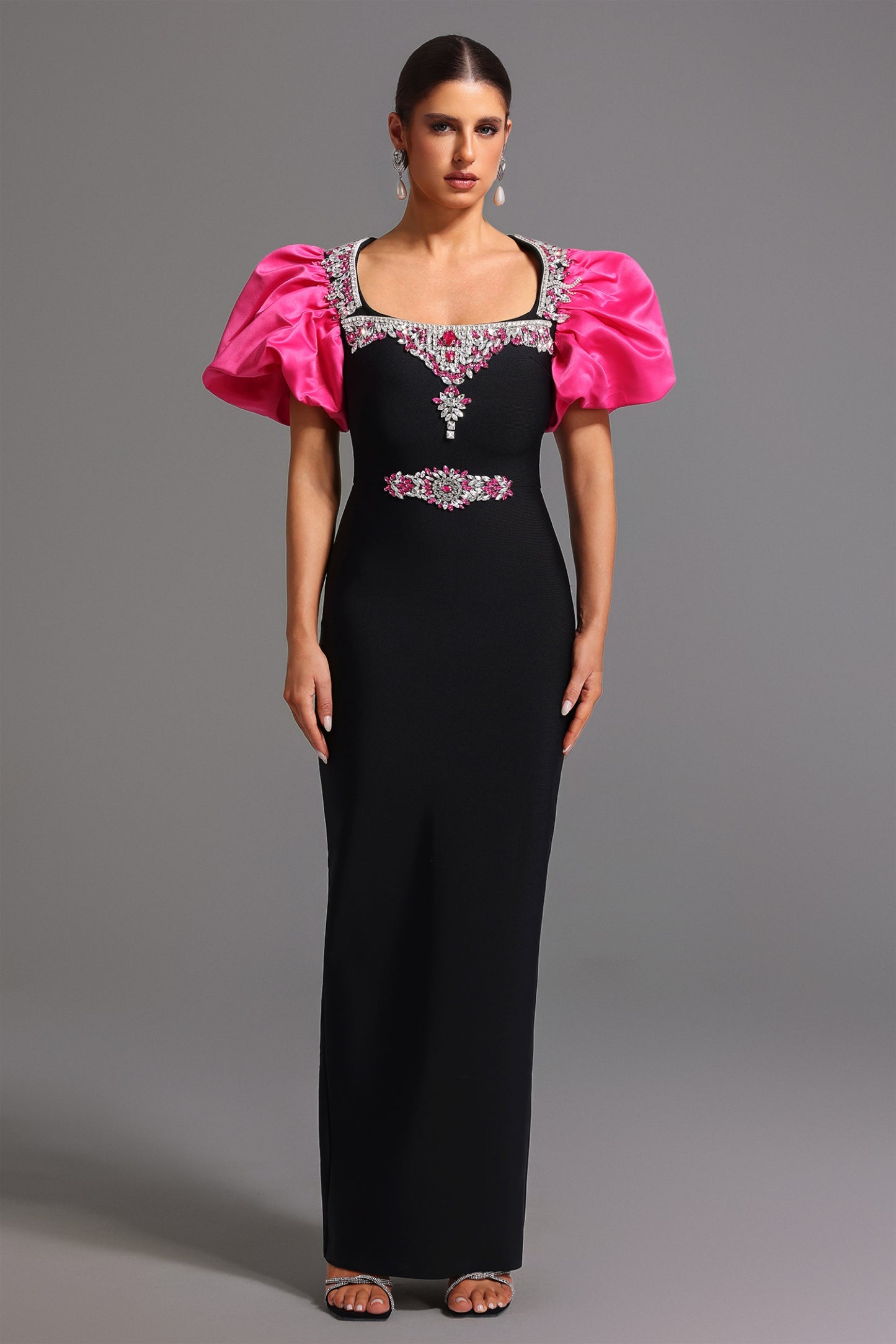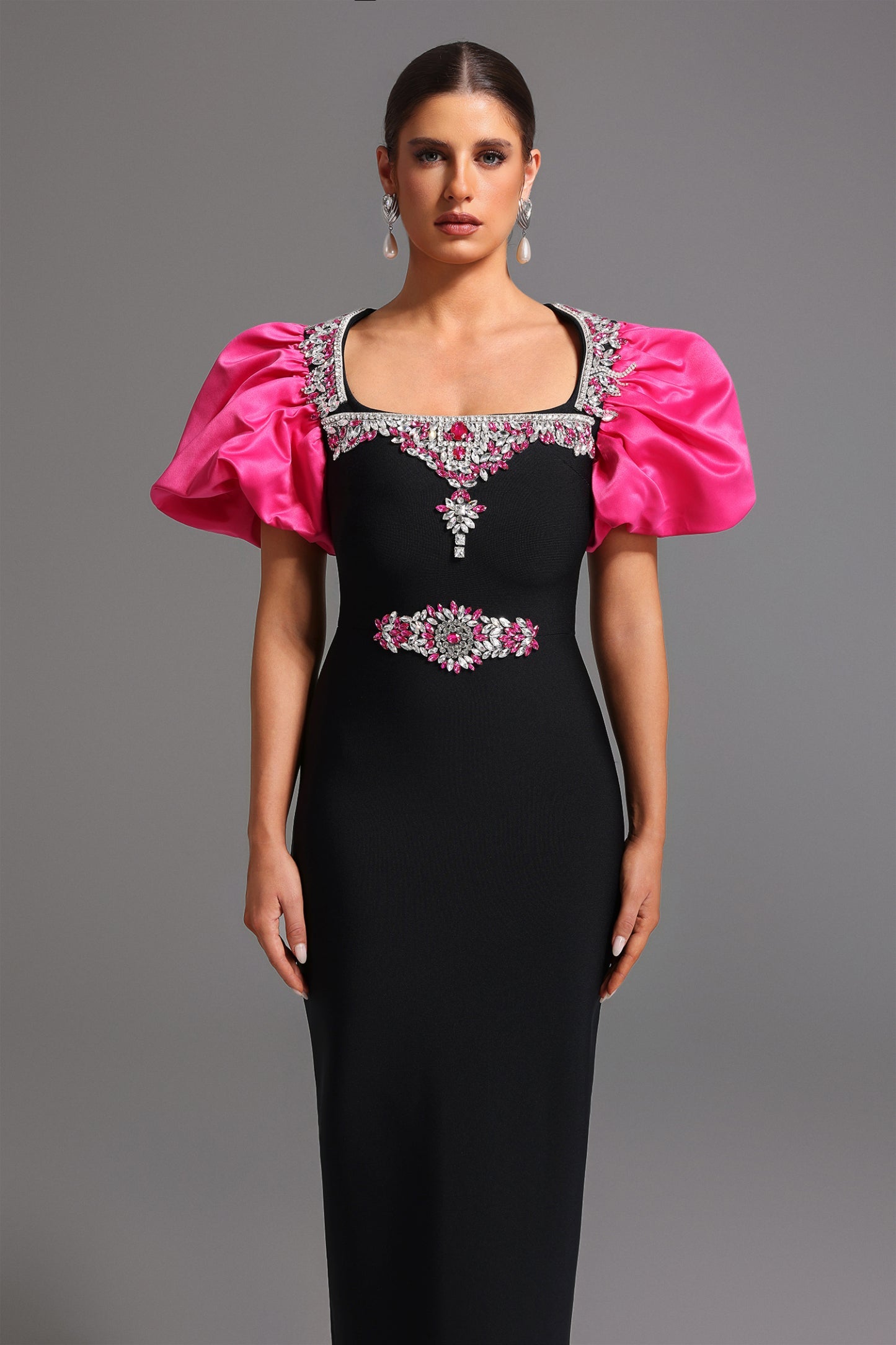 Kare Yaka Taş İşlemeli Bandaj Maxi Elbise