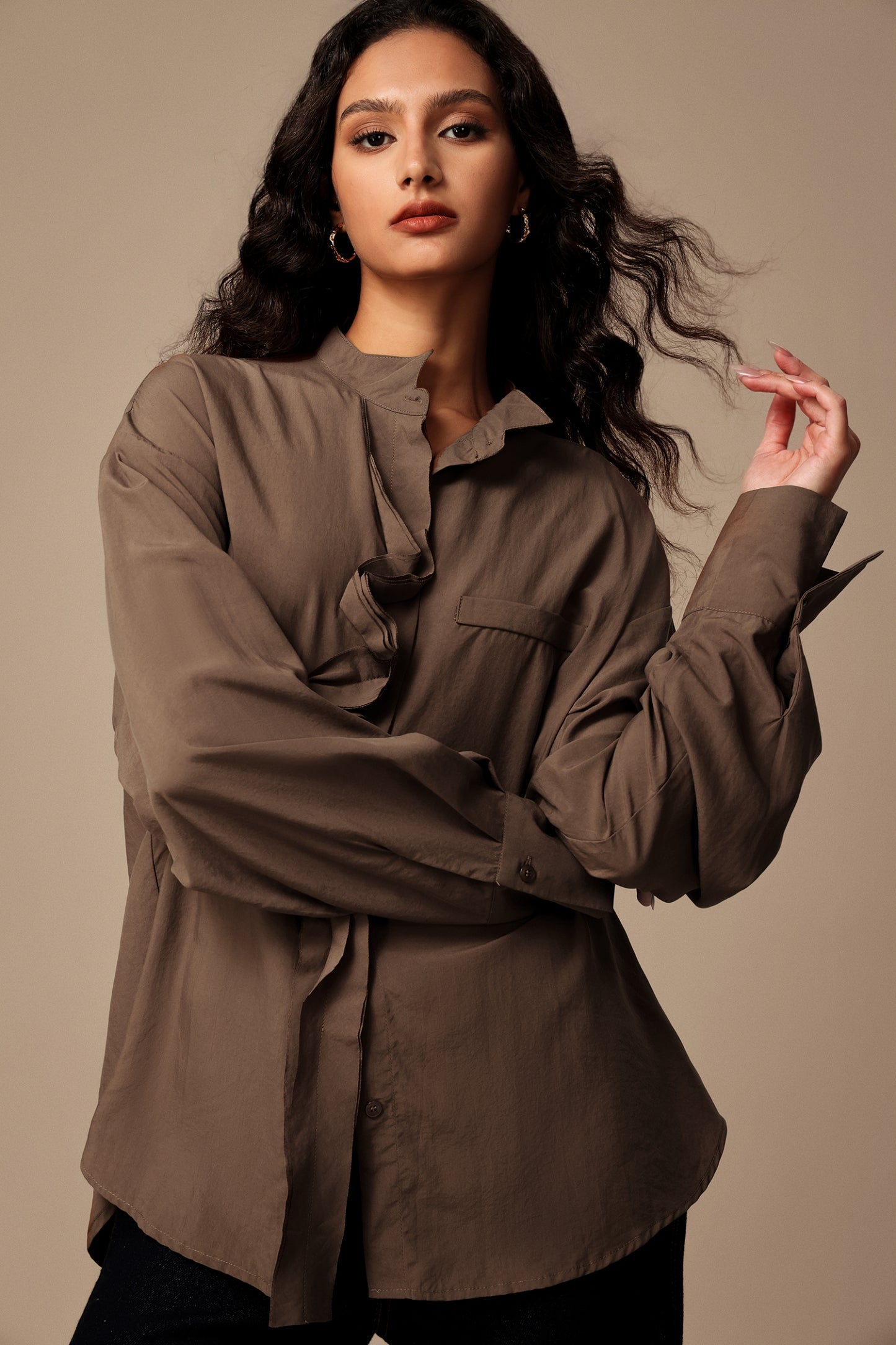 Radmila Uzun Kollu Volanlı Bluz, şıklığı ve rahatlığı bir arada sunan özel bir tasarımdır. Yapısında %95 oranında Tencel kullanılan bu bluz, yumuşacık dokusuyla cildinizle bütünleşir. Esnek kumaş yapısı gün boyu konfor sağlarken, zarif volan detayları ile dikkat çekici bir görünüm sunar.