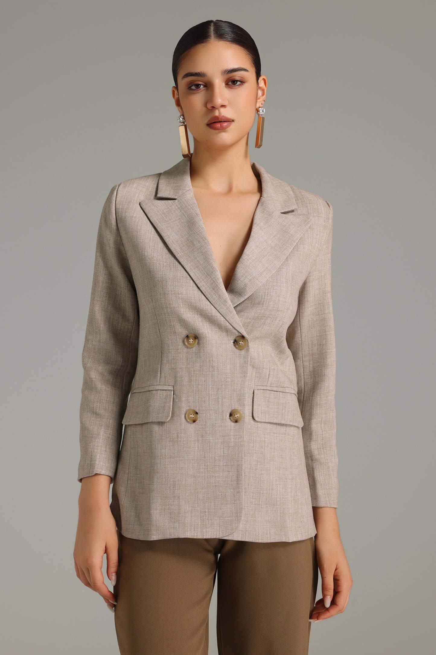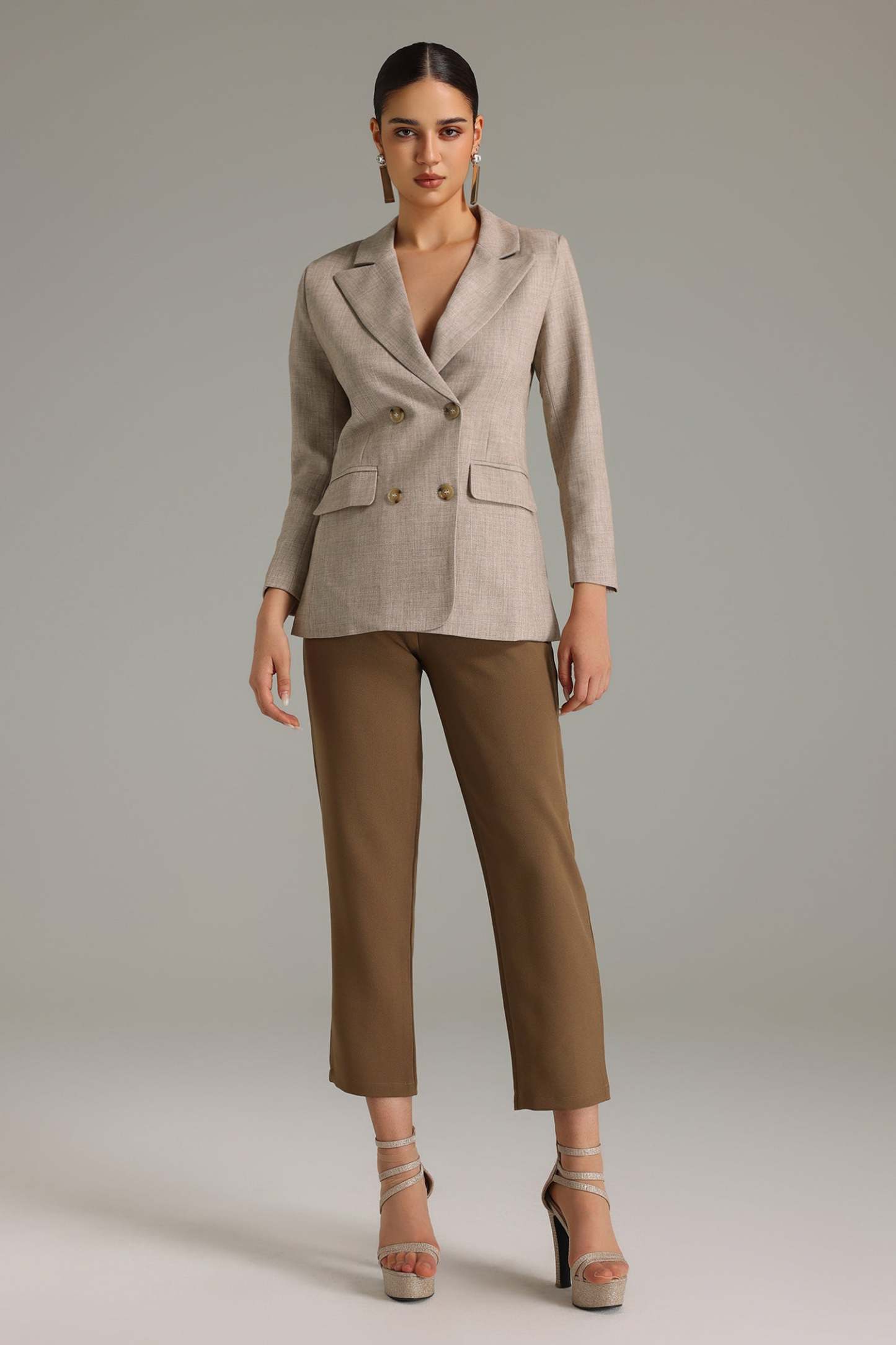 Rayen Çift Düğmeli Blazer Ceket, modern çizgileri ve şık detaylarıyla gardırobunuzun vazgeçilmezi olacak. Spandeks kumaş yapısı sayesinde esnekliği ile gün boyu rahatlık sunar. Hem iş toplantılarında hem de özel davetlerde rahatlıkla tercih edilebilir.