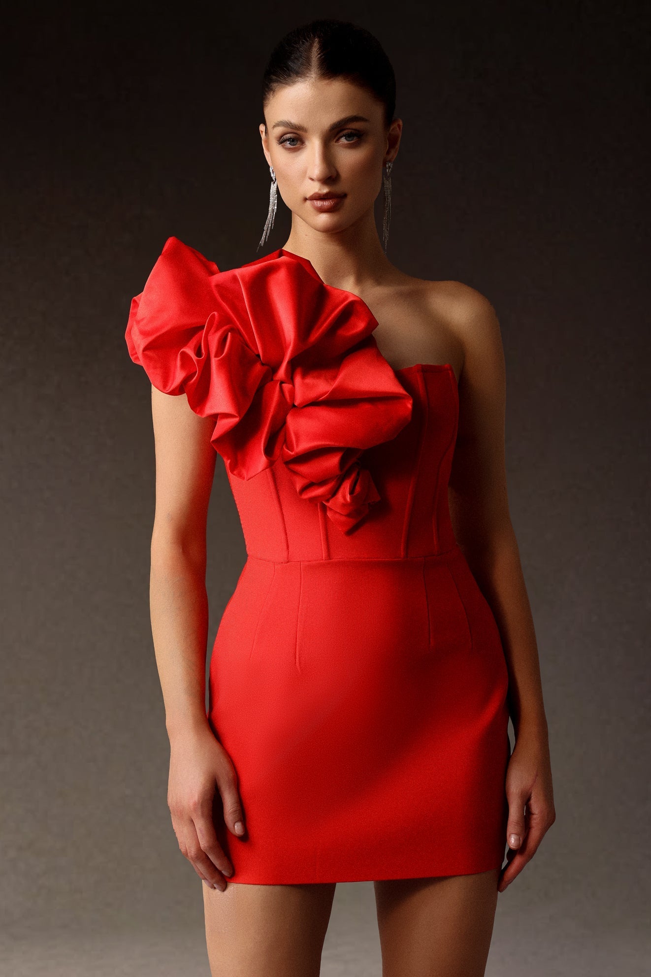 Rebekah Tek Omuz Çiçekli Bandaj Mini Elbise, zarif ve göz kamaştırıcı detayları ile dikkat çeker. Göğüs, bel ve kalça bölgesinde sağladığı esnek yapısı sayesinde vücut hatlarınıza mükemmel bir uyum sağlar. Bu mini elbise, özel davetler ve gece etkinlikleri için idealdir.