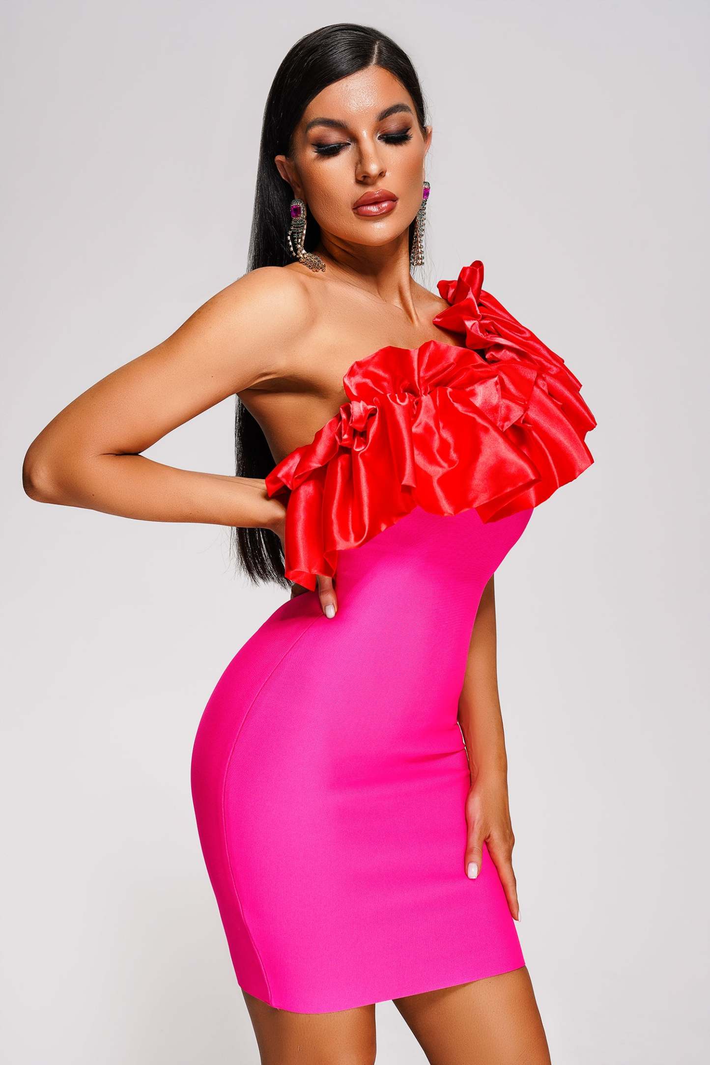 Riala Tek Omuzlu Mini Bandaj Elbise ile şıklık ve eleganlık bir arada! Bu özel tasarım, orta ağırlıkta esnek bandaj kumaştan üretilmiştir. Asimetrik bir yaka ve tek omuzlu, katmanlı volanlı bir kol tasarımı sunar. Vücudu saran bu mini elbise, her eğriyi kusursuzca sararken, mini boyu ile feminen bir duruş sergiler.