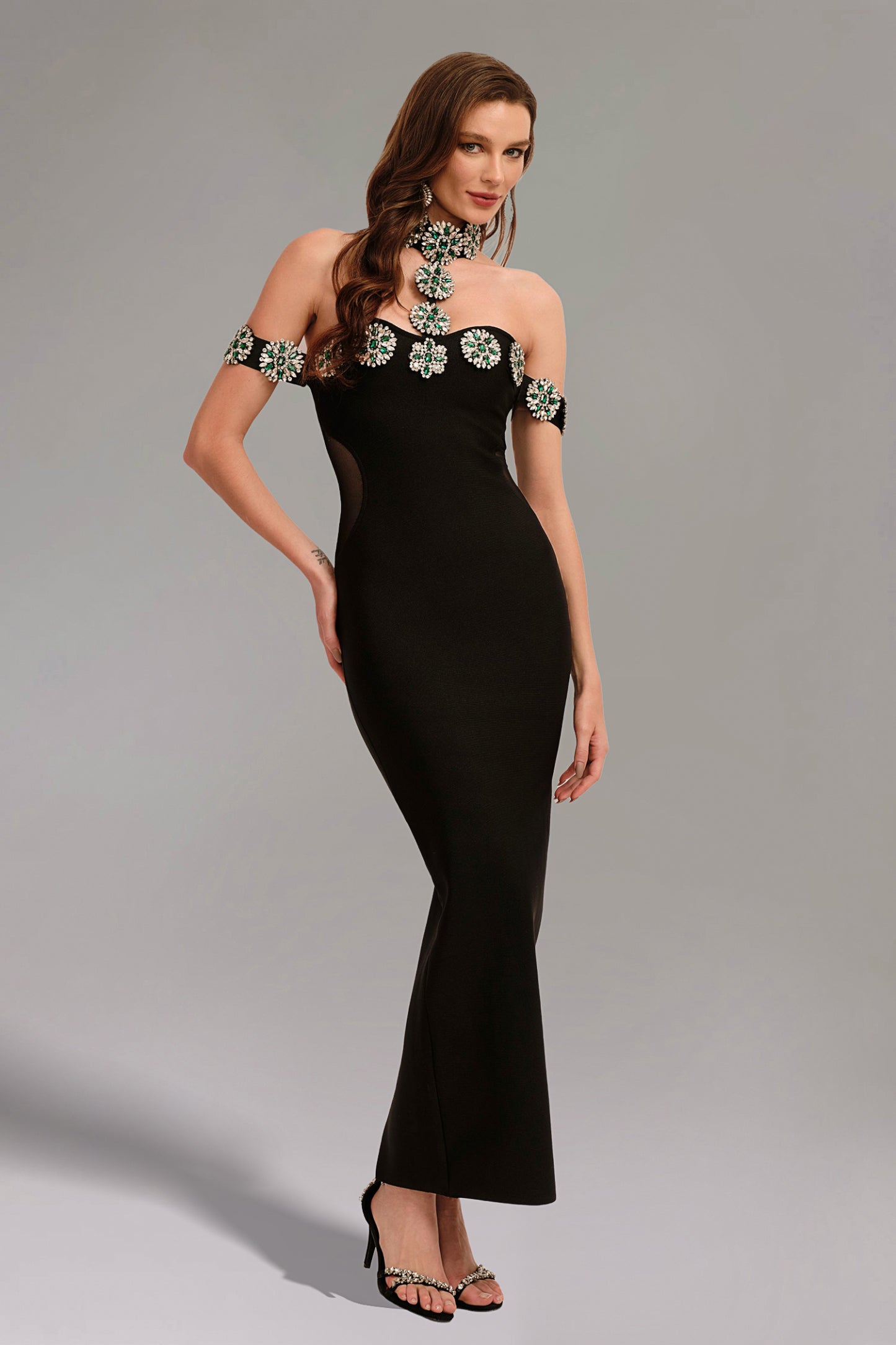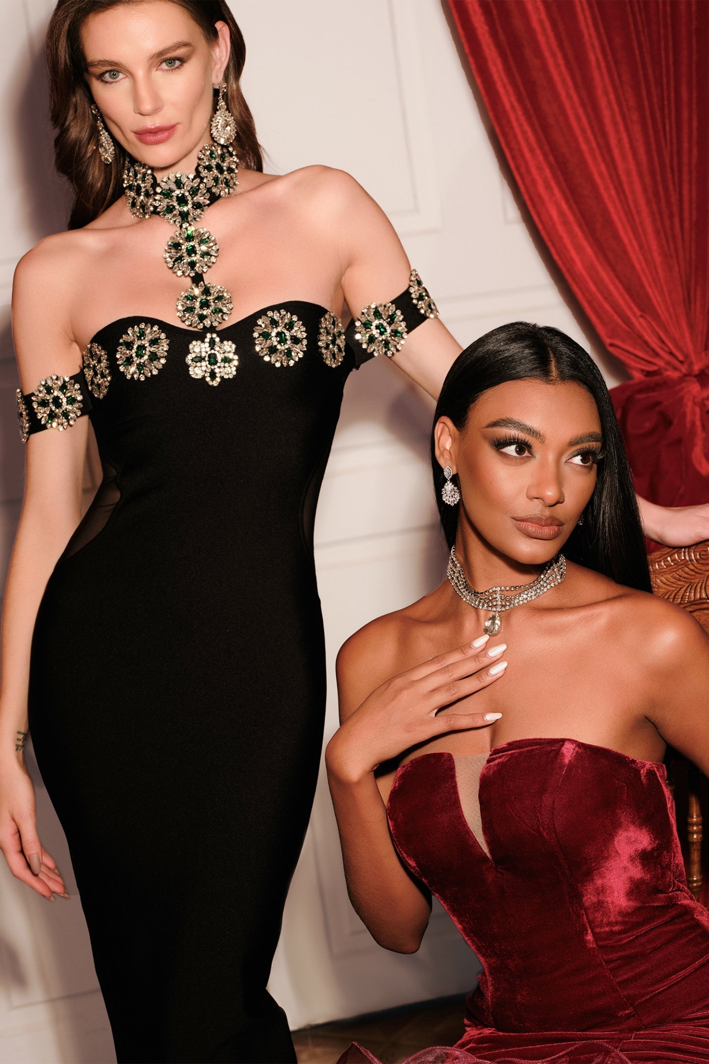 Bu zarif elbise, taş detaylarıyla ışıltınızı artırırken, özel dikim esnek kumaşı sayesinde rahat bir kullanım sağlar. Davetler, özel akşam yemekleri veya bir gala gecesi için idealdir. Rucifa'nın bu muhteşem elbisesiyle stilinizi bir üst seviyeye taşıyın.