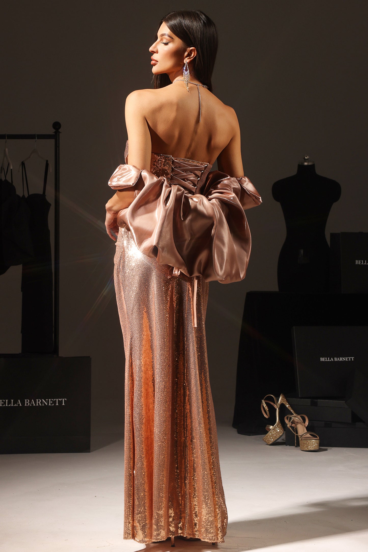 Eşsiz tasarımıyla göz kamaştıran bu kıyafet, özel üretimli ve her ölçüye uygun olacak şekilde dikkatle tasarlandı. Size S giyen modelimizin boyu 175 cm, göğüs ölçüsü 93 cm, bel ölçüsü 65 cm ve kalça ölçüsü de 93 cm'dir. Işığın etkisiyle renkte küçük değişiklikler olabileceğini unutmayın.