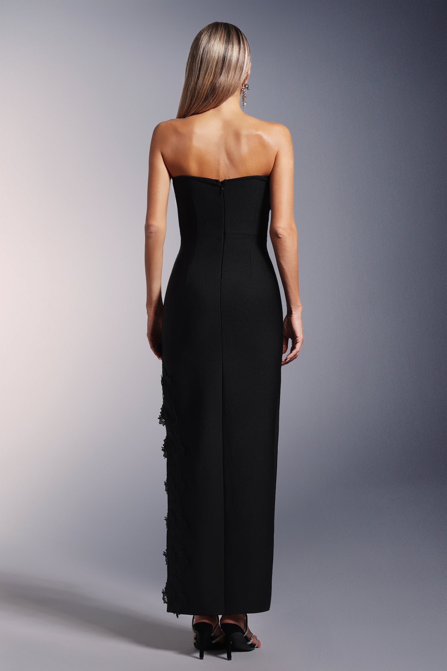 Satürn Dantelli Straplez Yırtmaçlı Bandaj Maxi Elbise