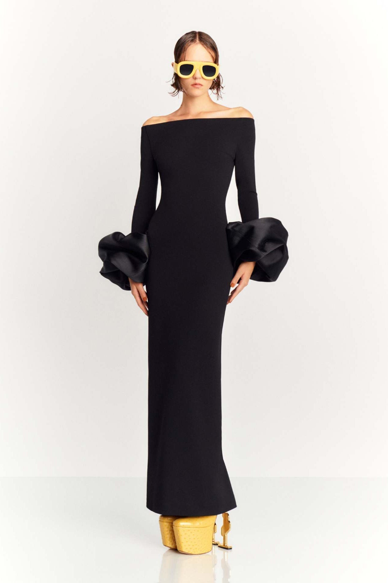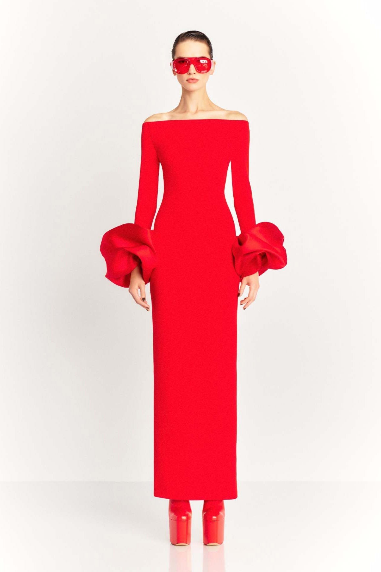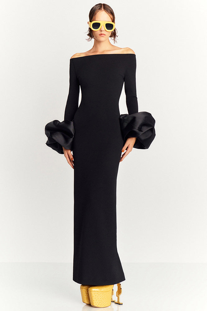 Bu saf renkli uzun elbise, zarif bir sonbahar-kış vazgeçilmezidir. Uzun fener kollu, gizli arka fermuar ve arka yırtmaçla tasarlanan bu model, hoş bir uyum için zarafeti kolaylıkla birleştiriyor.