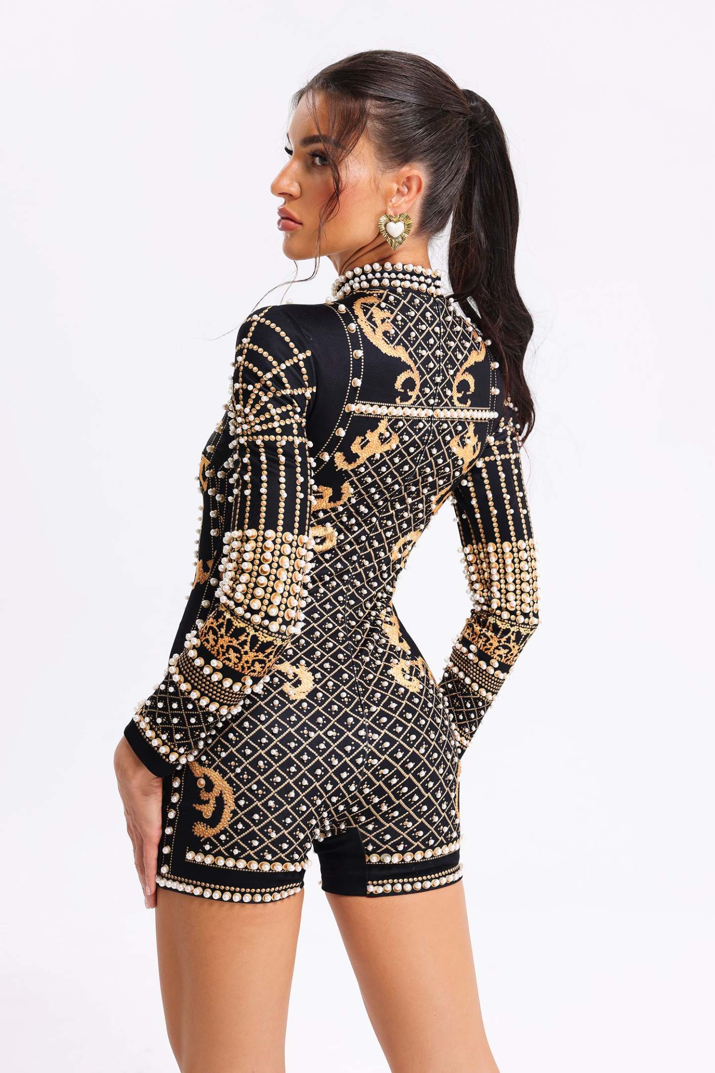 Tasarımında bulunan ince inci detayları ile feminen çizgileri ön plana çıkan bu tulum, size hem zarif hem de konforlu bir deneyim sunar.
