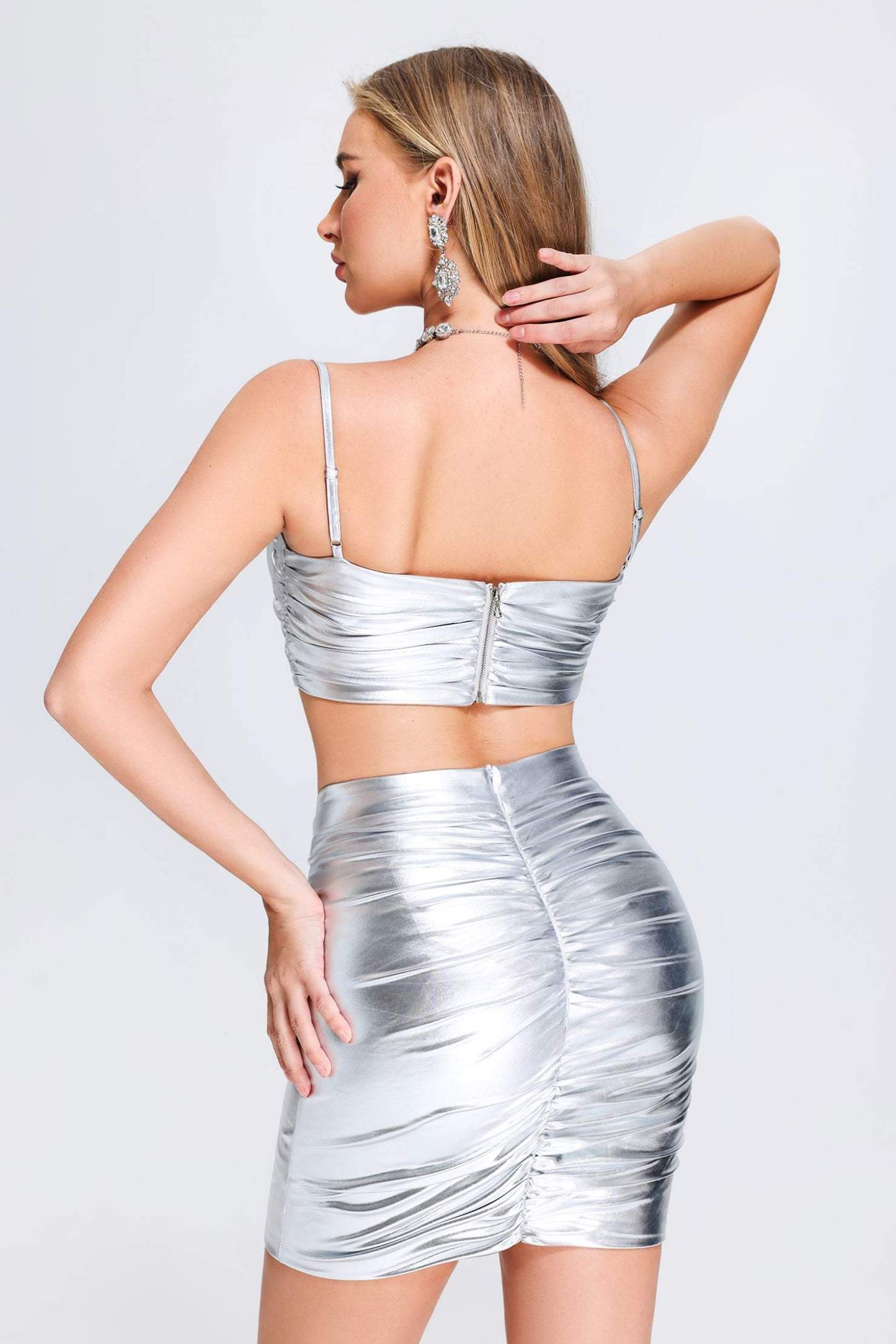 Şıklığı ve konforu bir arada sunan Talaiah Gümüş Renkli Büzgülü Takım, özel bir gecenin vazgeçilmezi. %95 polyester ve %5 spandex karışımından oluşan bu takım, esnek yapısıyla gün boyu rahatlığı garanti eder. Elde veya makinede yıkanabilir olan bu takım, uzun süreli kullanım için idealdir.