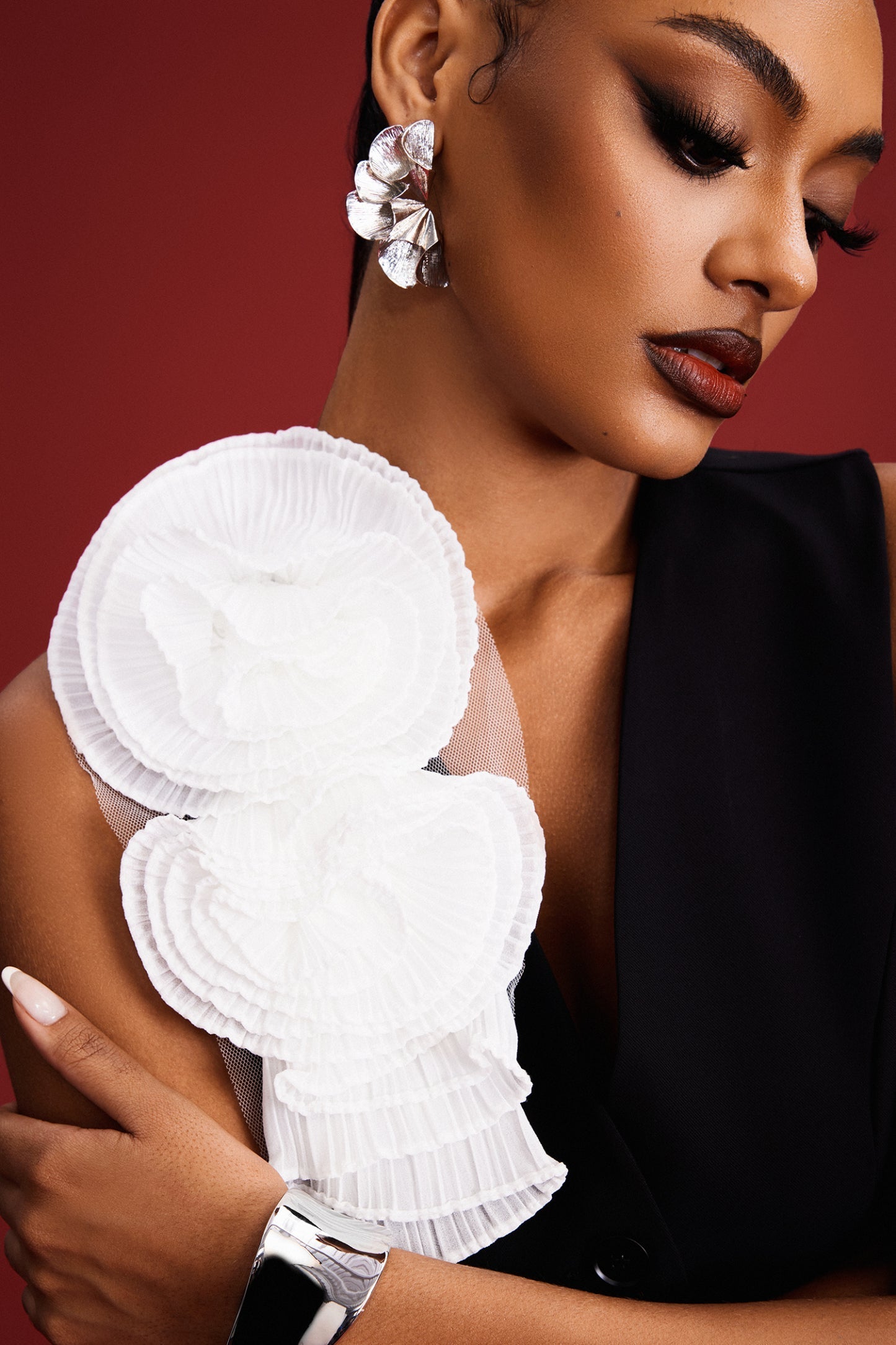 Tamarah File Desenli Yelek Pantolon Takımı ile stilinizi bir üst seviyeye taşıyın! Zarif, kolsuz yeleği file çiçek detaylarıyla süsleyen bu set, pliseli ve dokusuz dokuma pantolonlar ile tamamlanarak sofistike bir görünüm sunar. Yapısal tasarımı, feminenliği modern şıklıkla harmanlar. Kıyafeti, zarif aksesuarlar ve sivri burunlu topuklular ile tamamlayarak, oldukça şık ve özenli bir ansambl oluşturun.