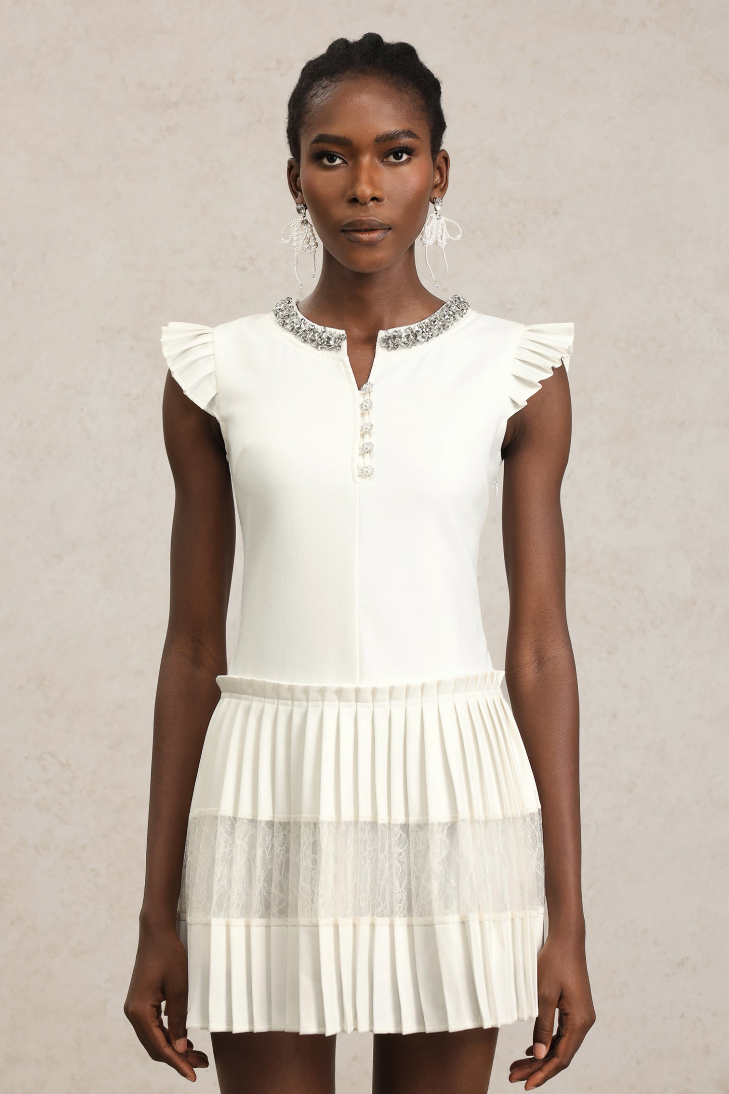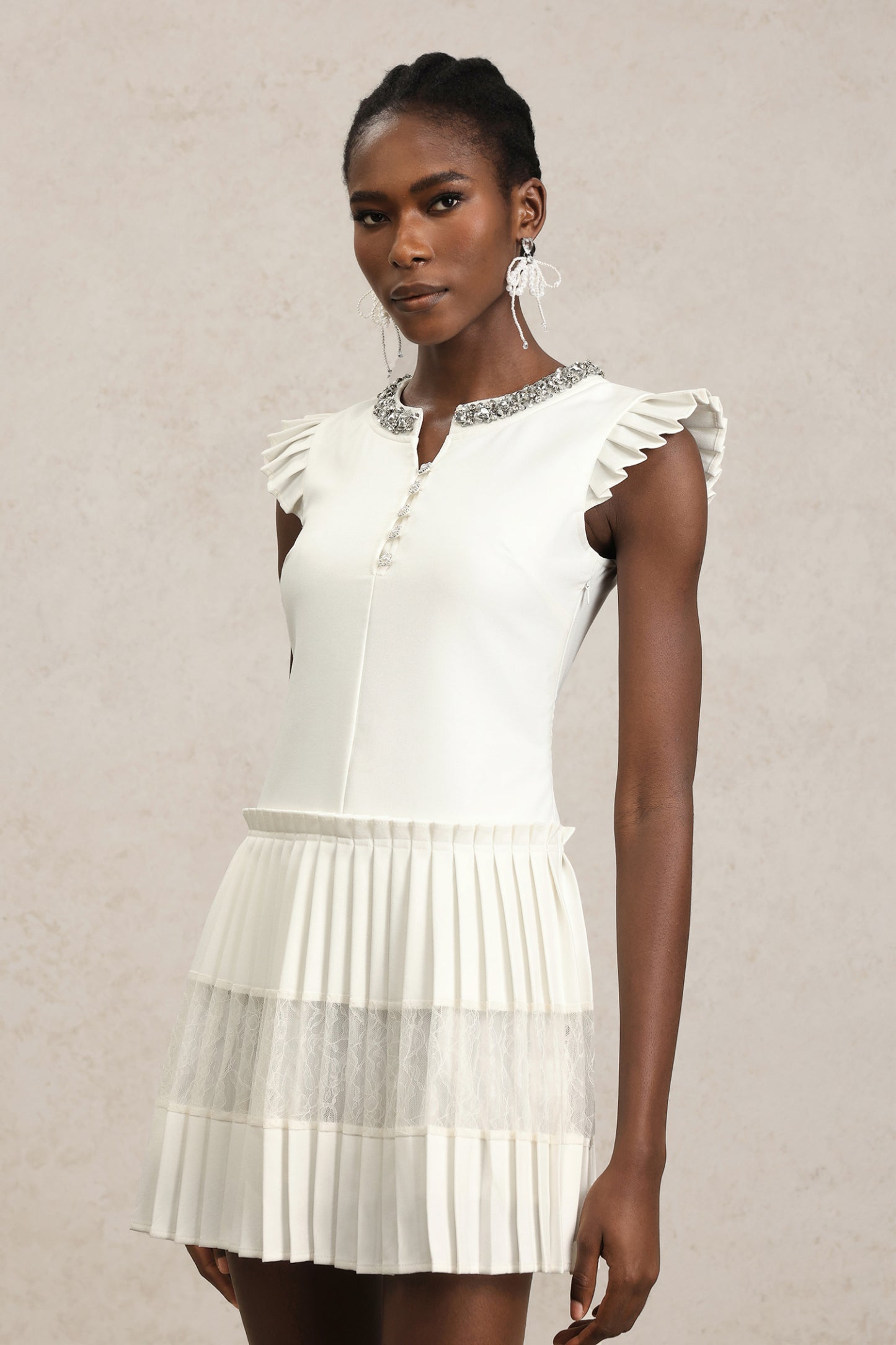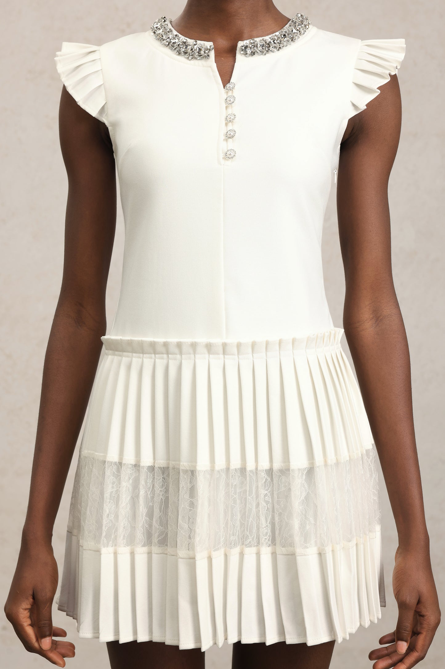 Yuvarlak Yaka Taş Detaylı Kolsuz Mini Elbise