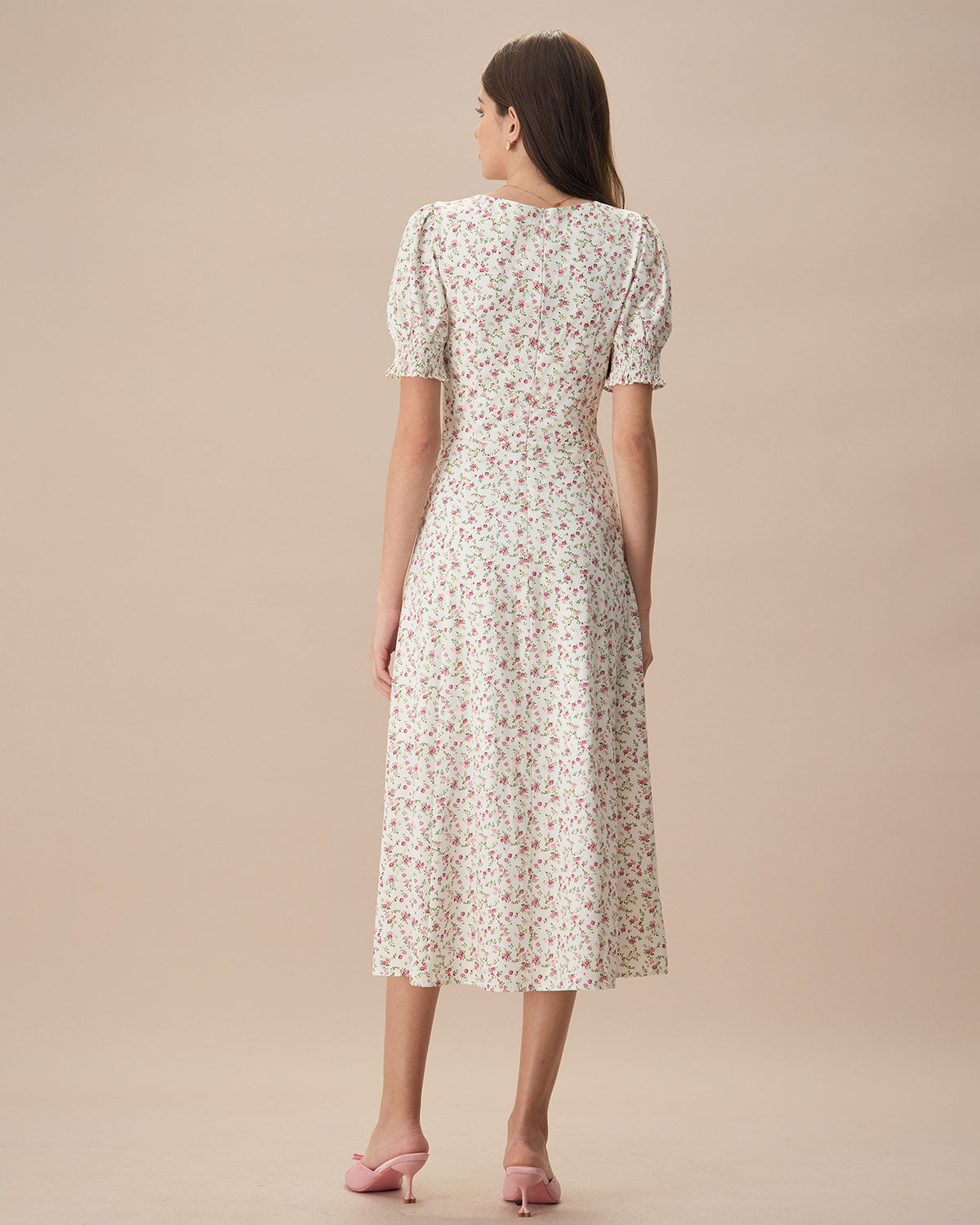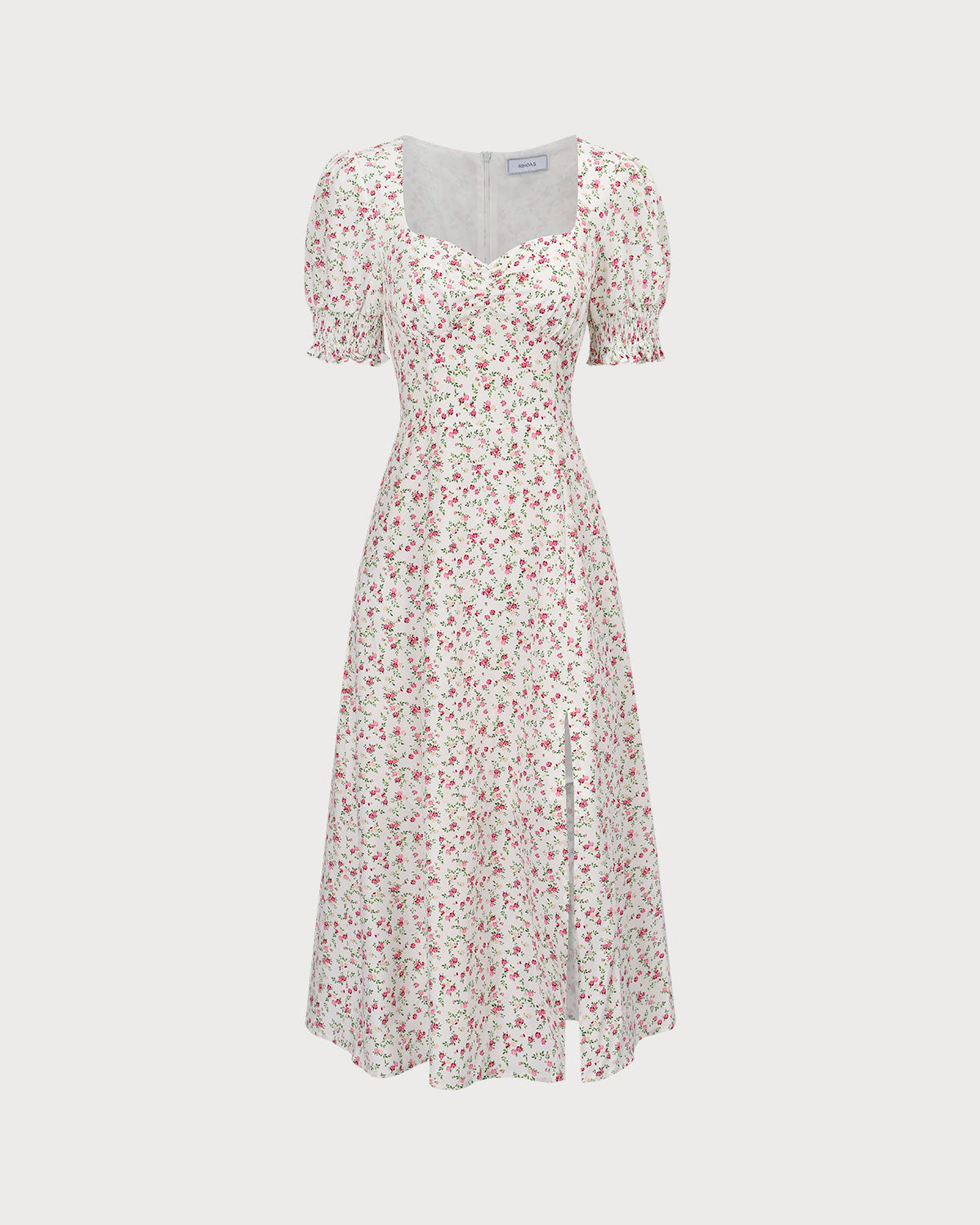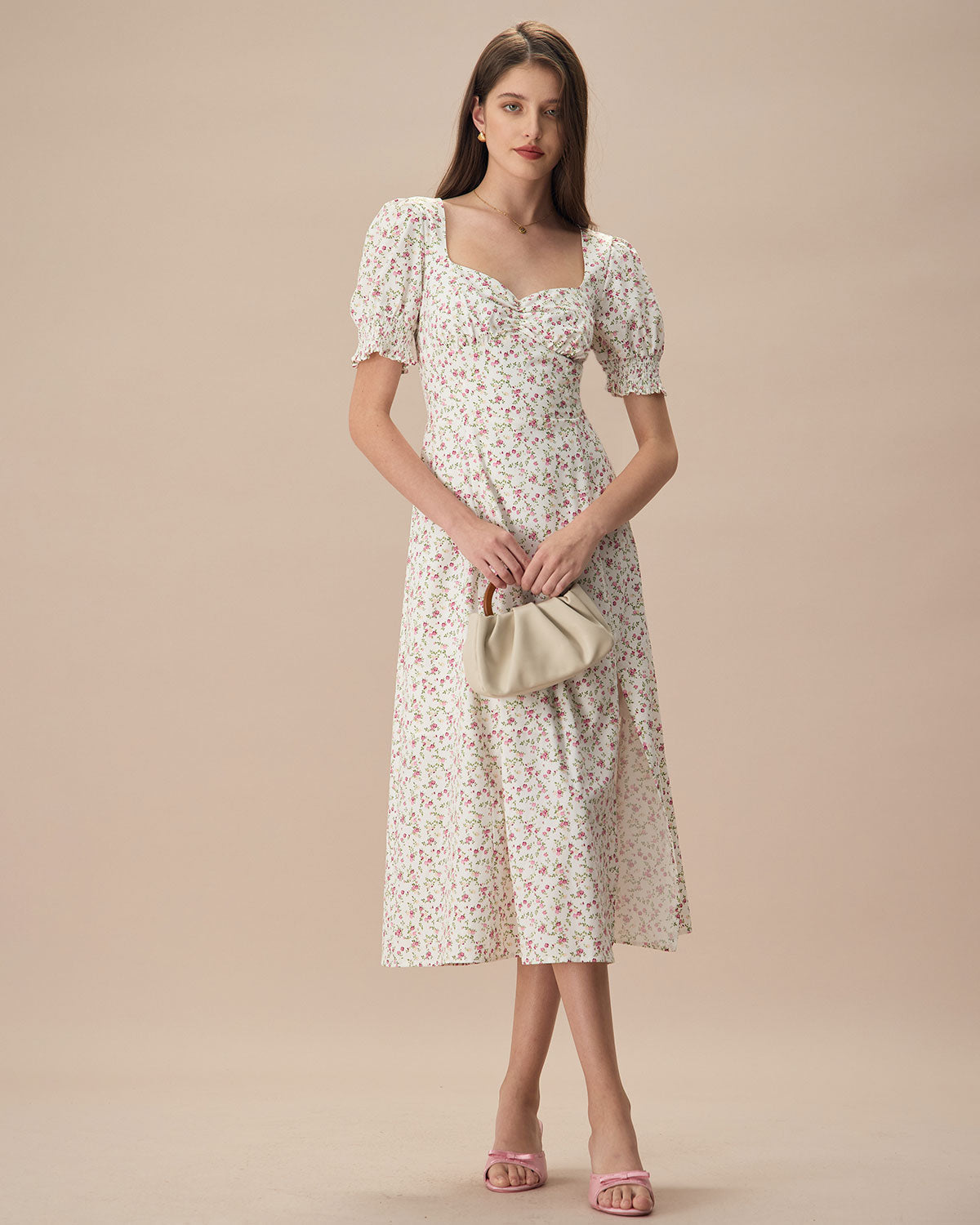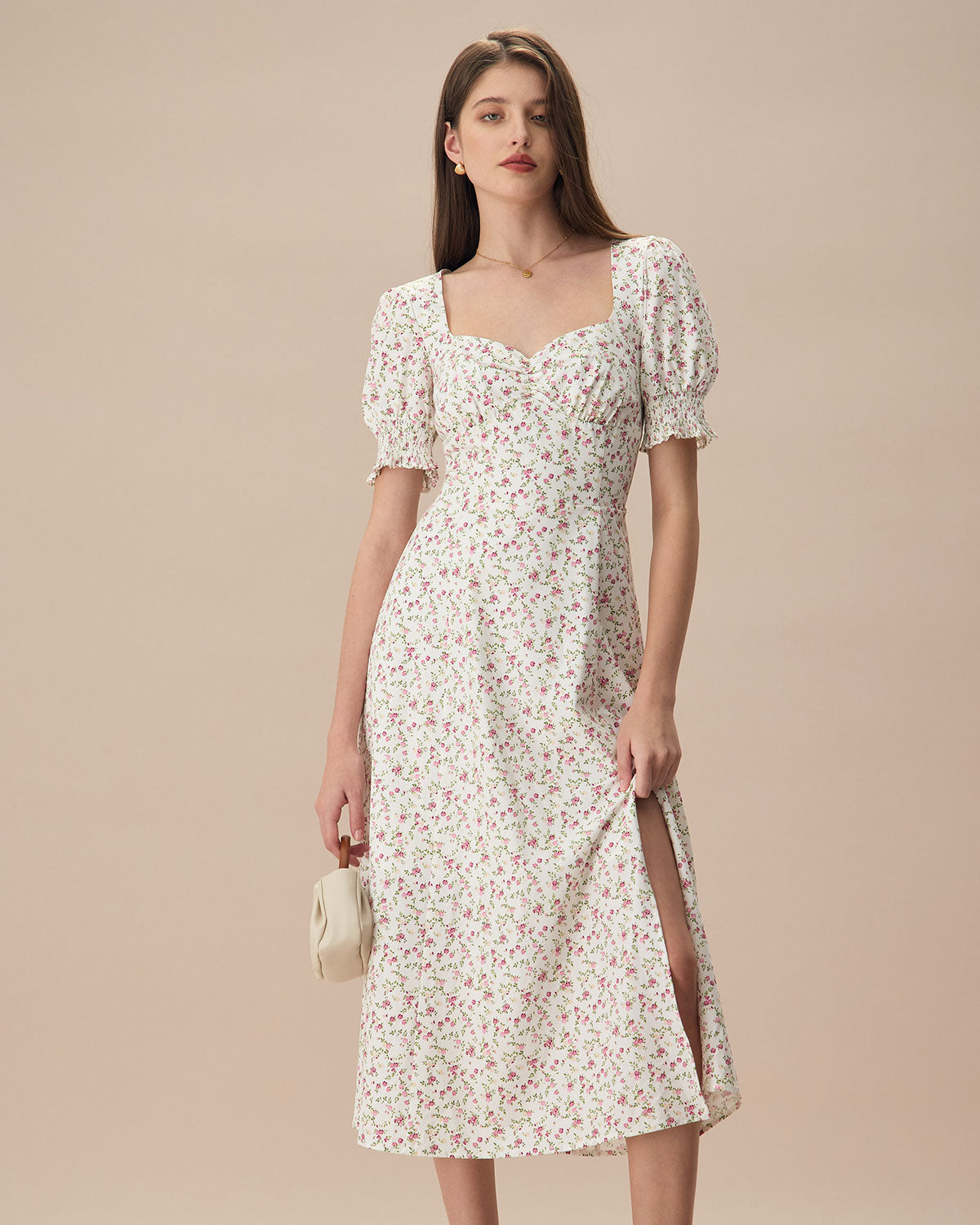 Açıklama: Bu midi elbise, vurgulayıcı kalp yaka ve zarif volan kollara sahip olup, romantik ve feminen bir hava yayıyor. Bej rengi, hafif çiçek desenleriyle süslenmiş olup, vintage bir çekicilik katarken modern bir çekiciliği de koruyor.