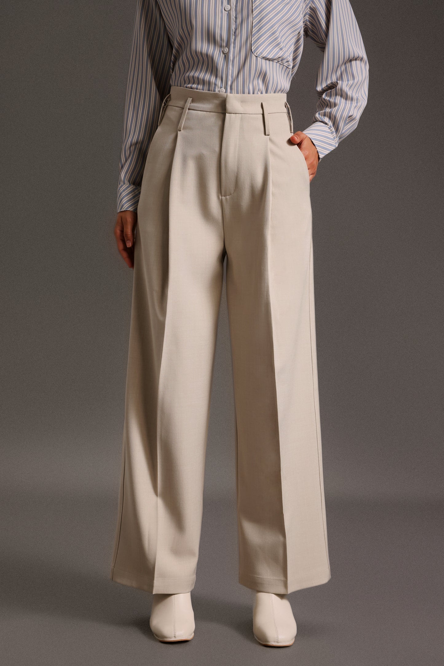 Işıkla dolu bir ofis günü için mükemmel olduğu kadar, arkadaşlarınızla akşam yemeğine çıkarken de iddialı bir seçim olan bu pantolon, Theodora'nın özgün tasarım anlayışını yansıtıyor.