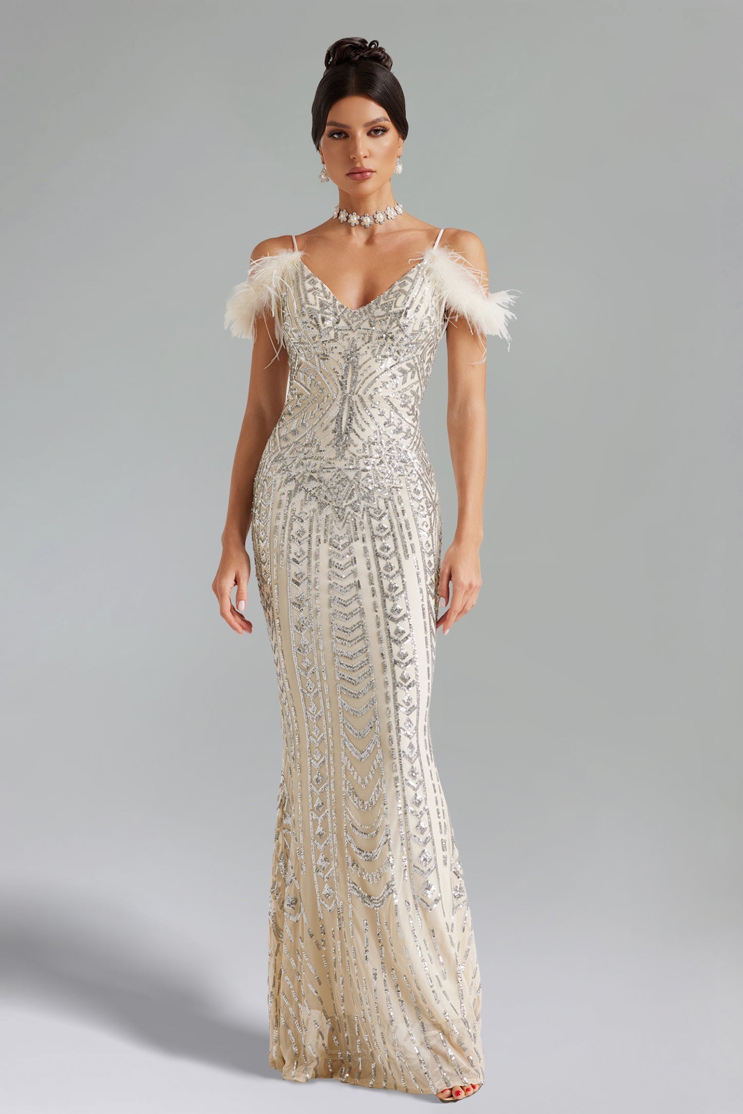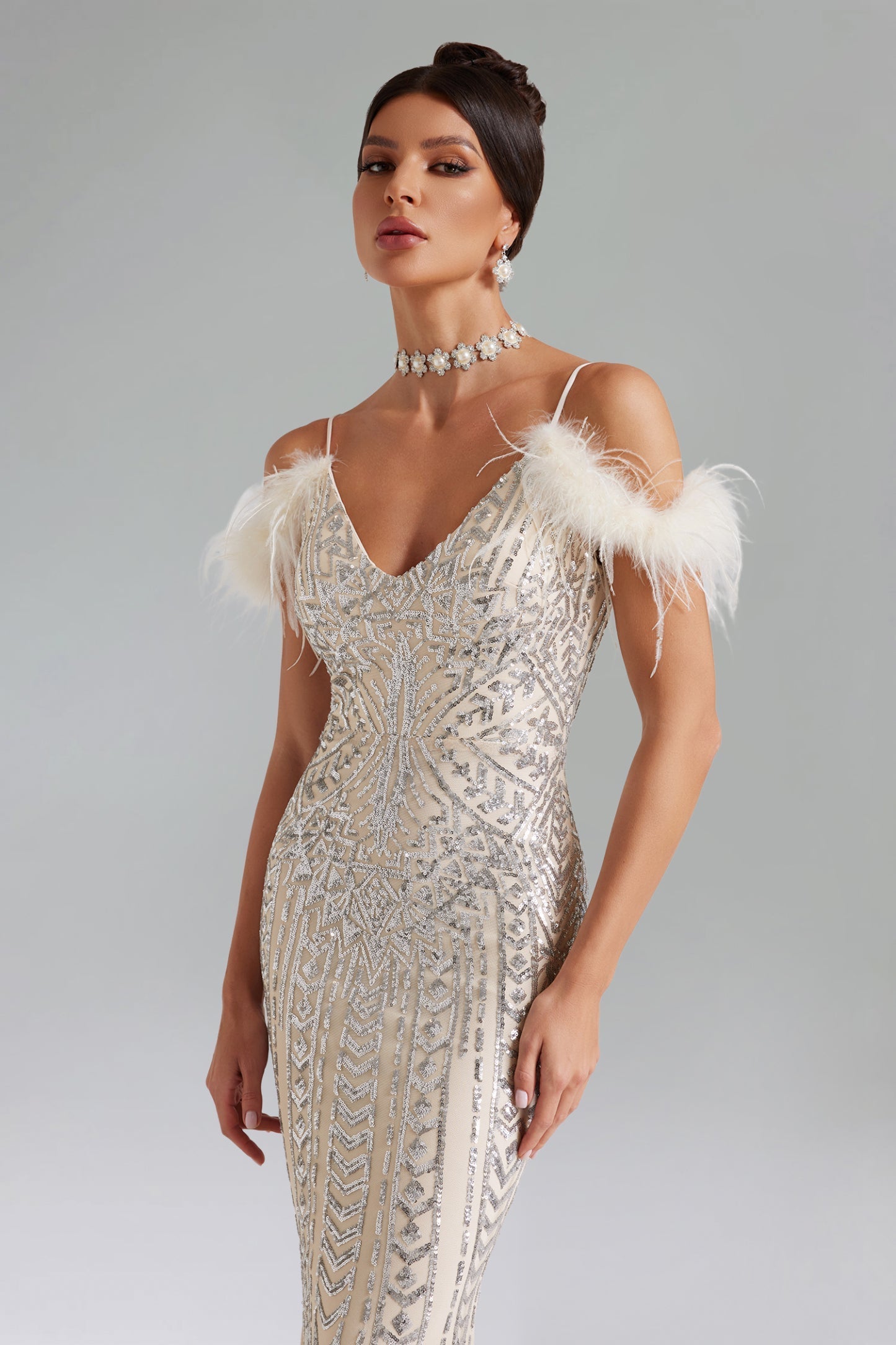 Davetlerinizde tüm gözleri üzerinize çekmek için Trese Gümüş Payetli Kuyruklu Elbise vazgeçilmeziniz olacak.