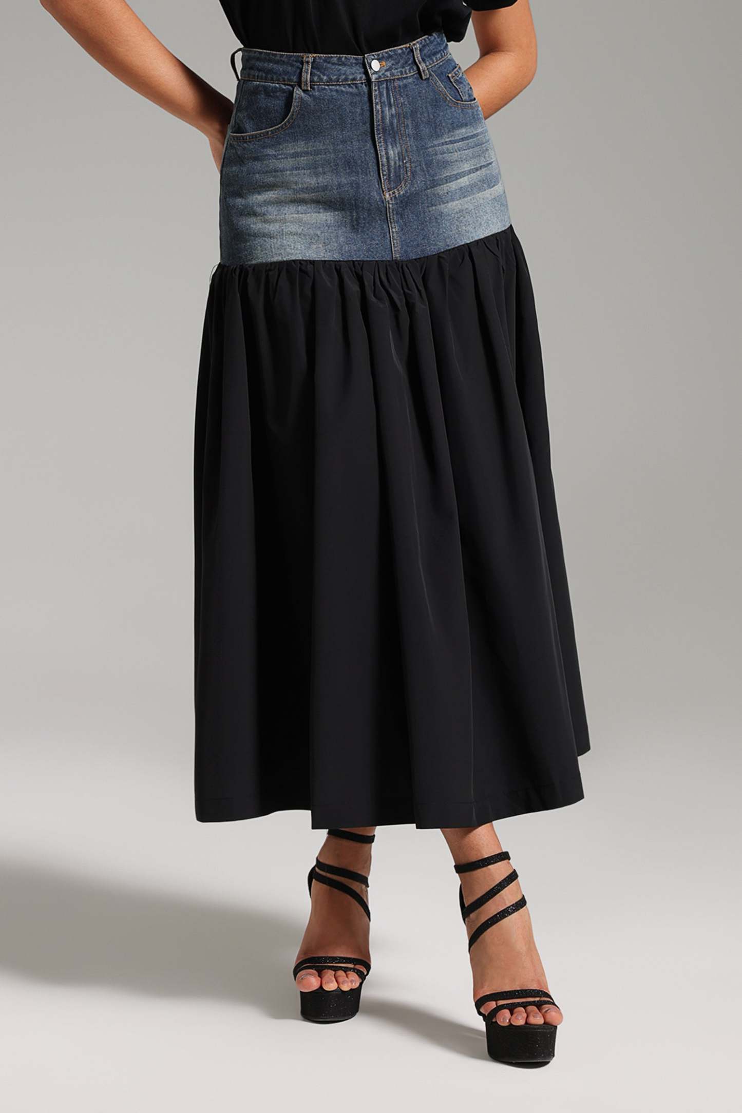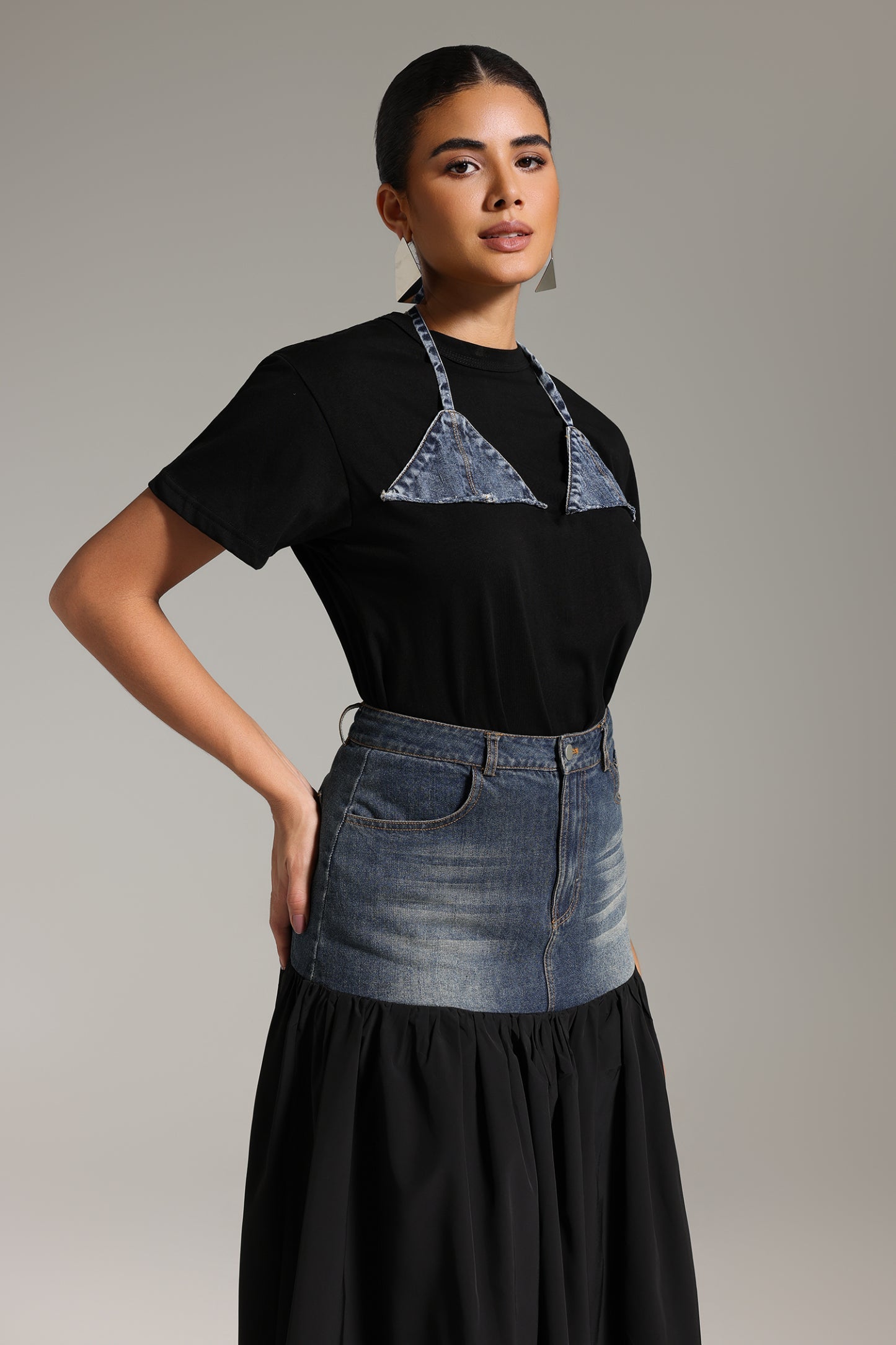 Her parçası ayrı bir özenle hazırlanan bu denim ikili takım, patchwork deseniyle trendleri yakalamanızı sağlar. Gerek sokak stili, gerekse küçük davetlerde rahatlıkla tercih edebileceğiniz bu takım, gardırobunuzun vazgeçilmezi olacak.
