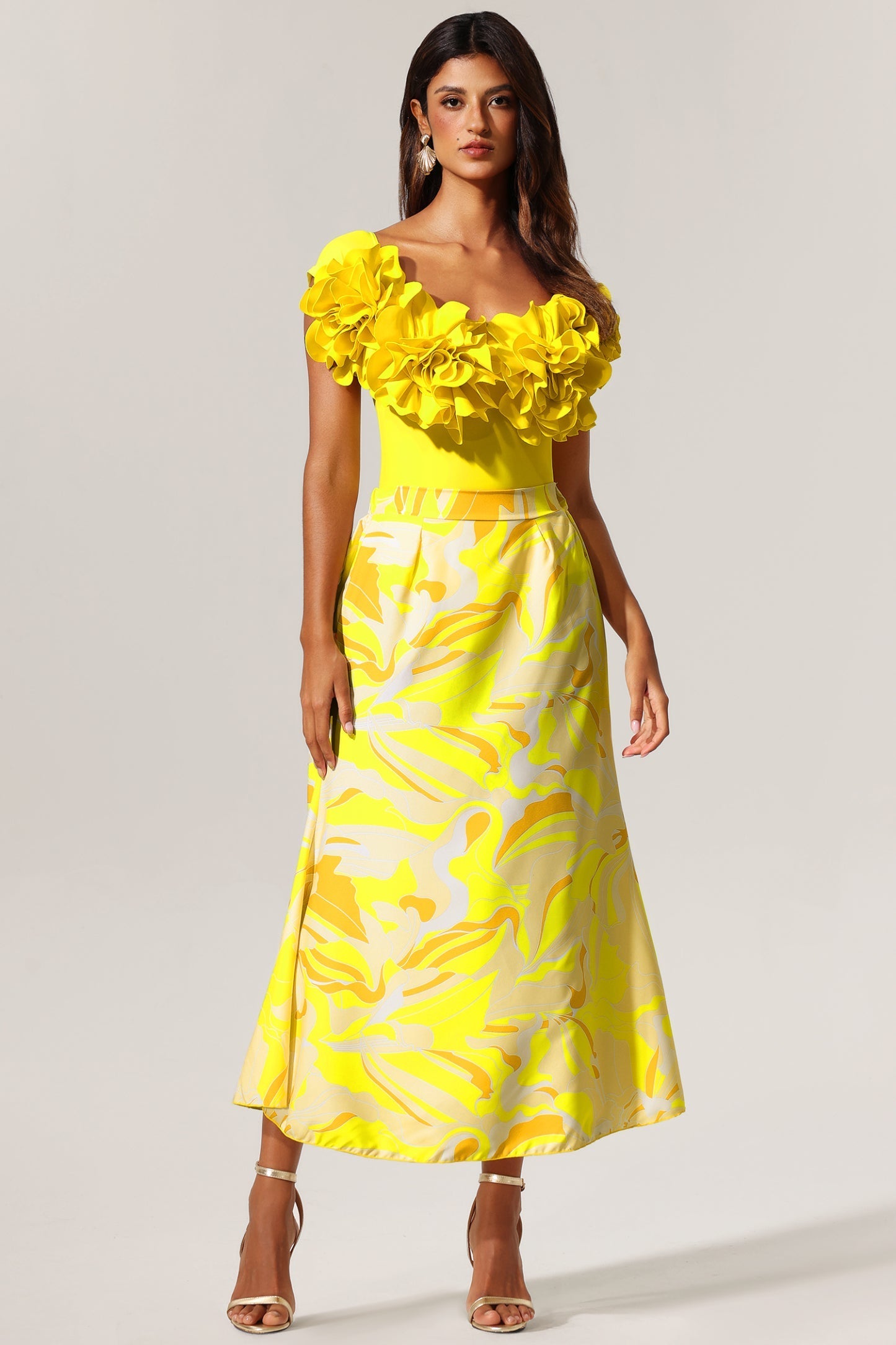 Tasarımın zarafeti, Veva Omuz Açık Çiçek Desenli Maksi İkili Takımla ön planda. Rahat kesimi ve omuzları sımsıkı saran tasarımıyla dikkat çekici bir görünüm sunar. Elbisemizin en özel yanı, özel üretim çiçek desenli kumaşıdır. Esnek yapısı sayesinde, tüm bedenlere mükemmel uyum sağlar.