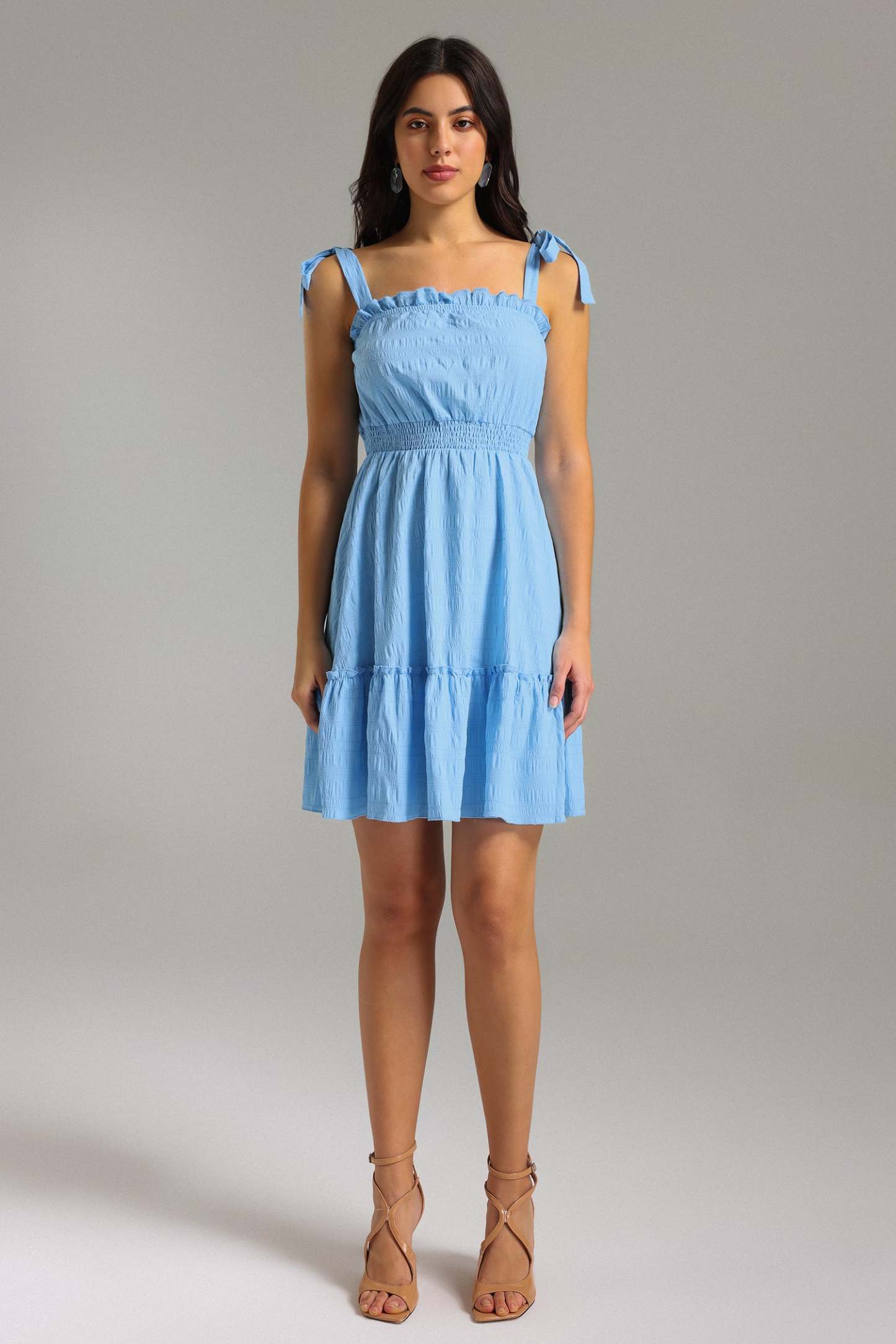 Her türlü özel gün için ideal olan bu mini elbise, volan detaylarıyla dikkat çekici bir siluet yaratır. Plaj partilerinden akşam yemeklerine, her ortamda farkınızı ortaya koyun.
