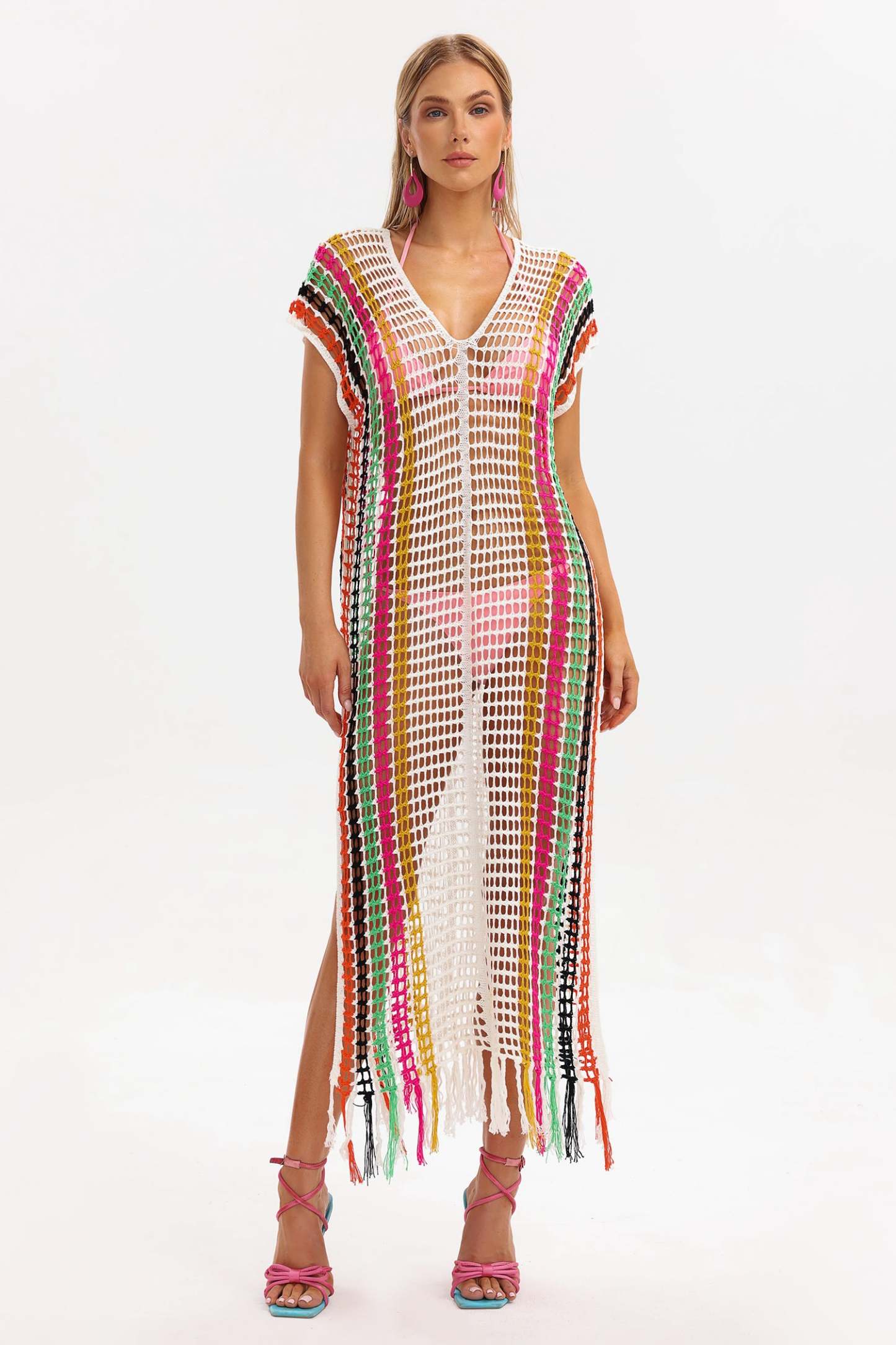 Viomo Örgü Plaj Elbisesi, yaz günlerinin vazgeçilmezi haline gelen yan yırtmaç detayları ile dikkat çeker. Ürün, bikiniler hariç satılmaktadır. Berrak plaj sabahlarından, samimi akşam davetlerine kadar her ortamda rahatlık ve şıklığı bir arada sunar.