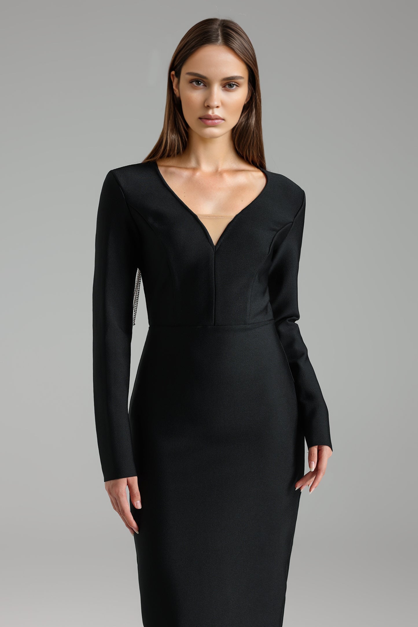 Tasarımıyla büyüleyen Wenrey V Yaka Uzun Kollu Bağcıklı Maksi Elbise, özel günlerinize zarafet katmak için tasarlandı. Modelimiz S beden giymekte olup yüksekliği 175 cm, göğüs çevresi 93 cm, bel ölçüsü 65 cm ve kalça çevresi 93 cm'dir. Gerçek beden ölçülerinize uygun kusursuz bir oturuş sunar. Renk, çekimlerdeki ışıklandırmaya bağlı olarak değişiklik gösterebilir.