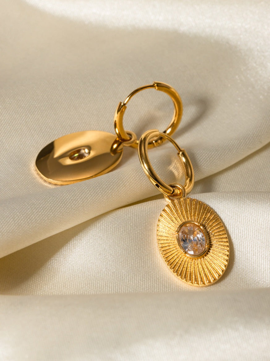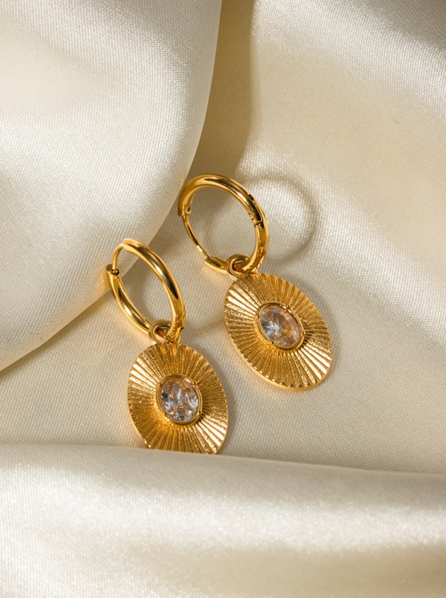Beyaz Pırlanta Taşlı 18 Ayar Altın Kaplama Oval Küpe