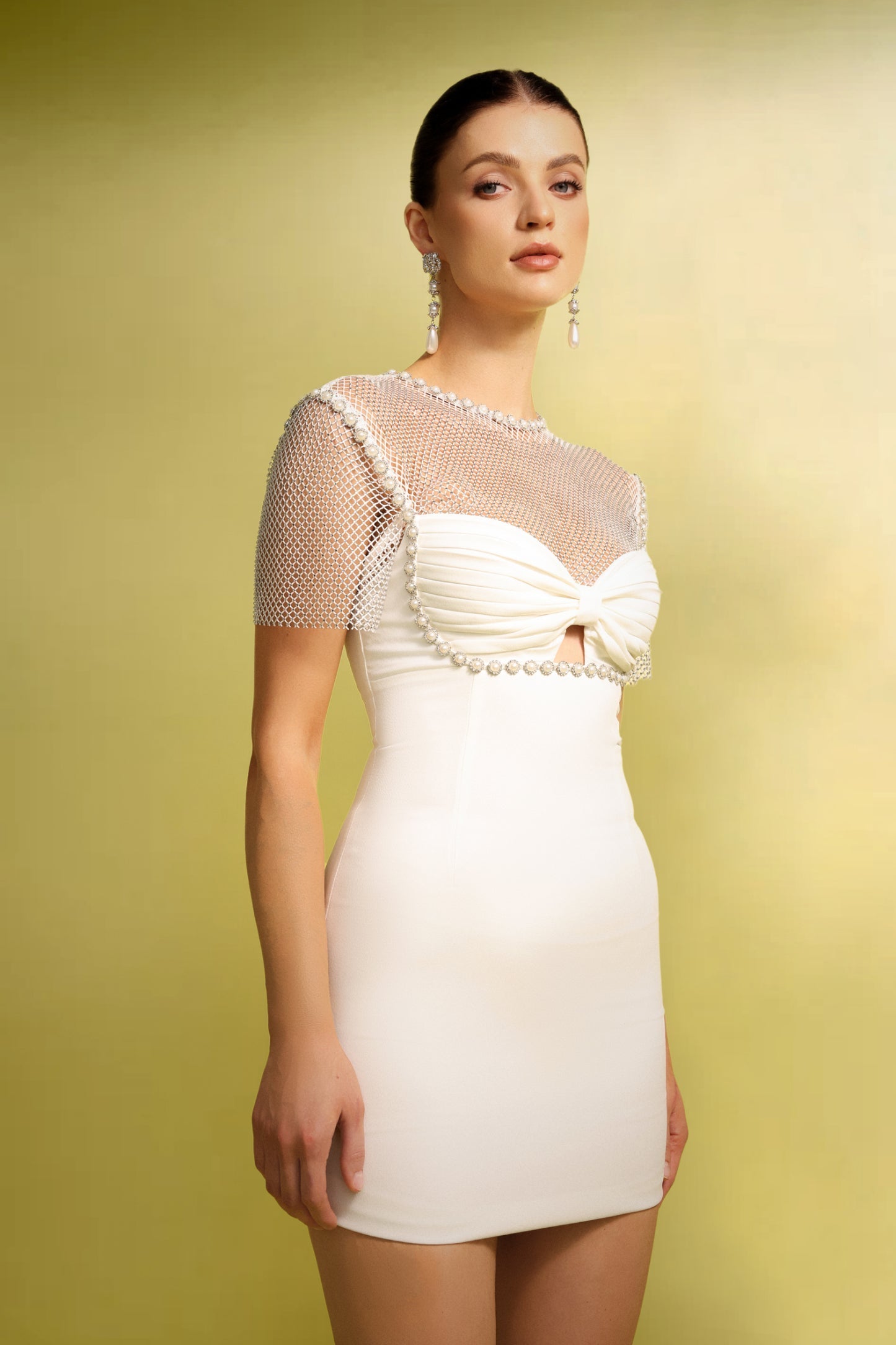 Wille Kısa Kollu Ajourlu Mini Elbise, modern ve şık tasarımı ile göz kamaştırıyor. Özenle örülmüş ajour detayları, elbisenin hem gününüzü hem de özel davetlerinizi süsleyecek zarafeti taşır. Esnek yapısı sayesinde rahat hareket etme olanağı sağlar, vücudu sararak feminen hatları ön plana çıkarır.