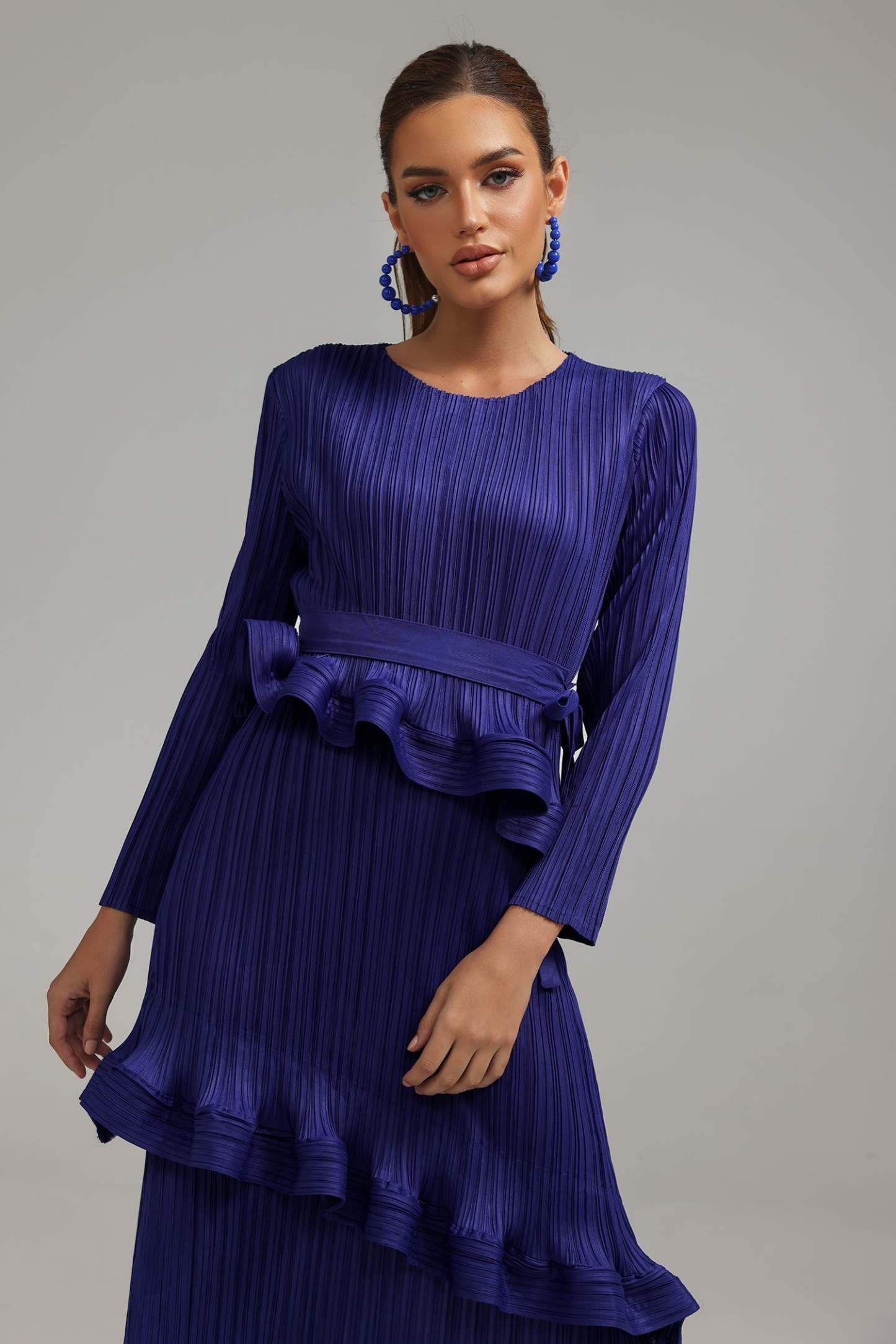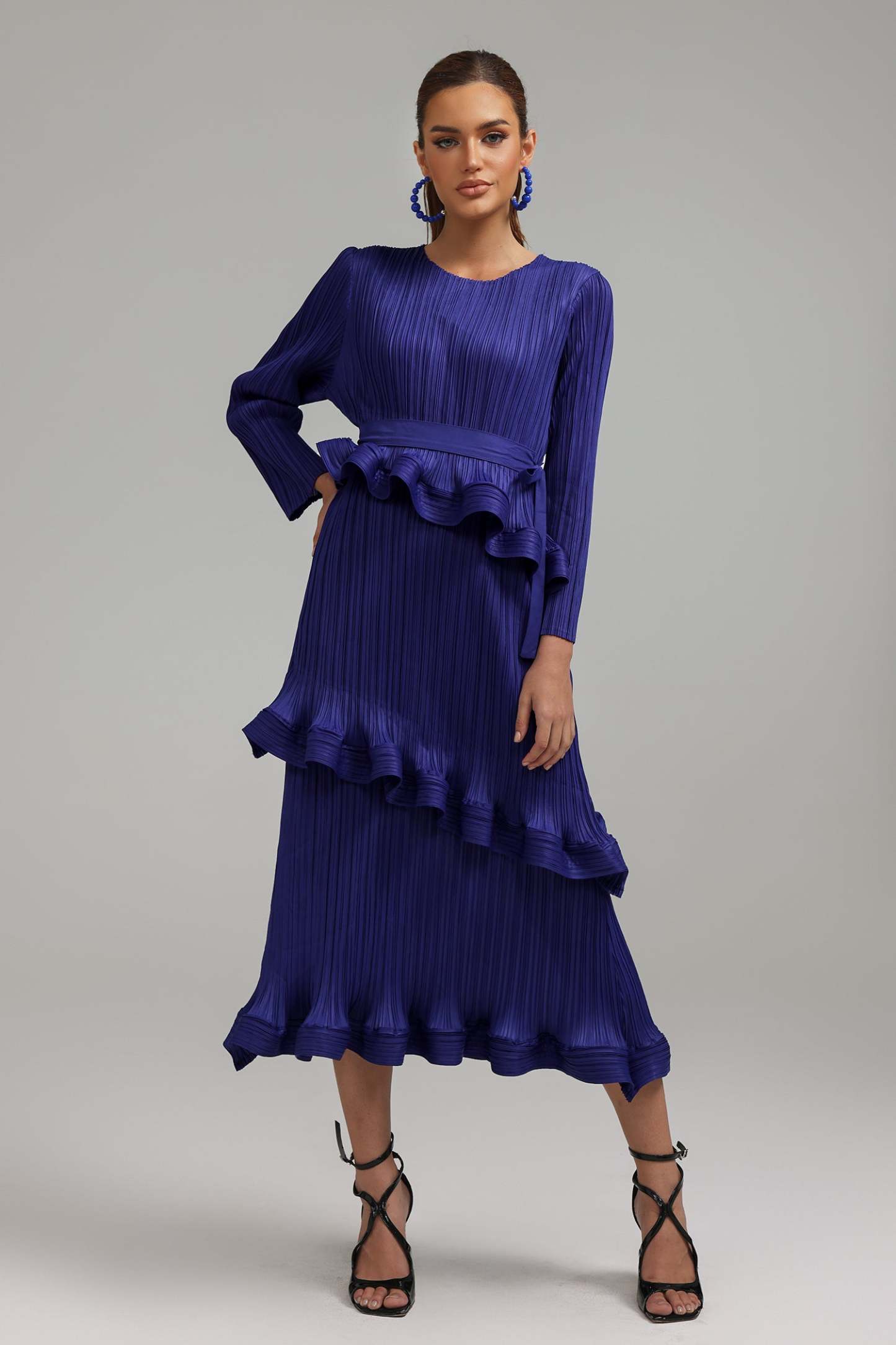 Winify Katmanlı Pileli Midi Elbise ile sofistike bir görünüme kavuşun. Polyesterden üretilen bu zarif elbise, gece şıklığı ile gündüz kullanımının mükemmel uyumunu sunar. Ürün, özel pileli katmanları sayesinde hareket özgürlüğü tanırken, midi boyu ile feminen bir duruş sergiler.
