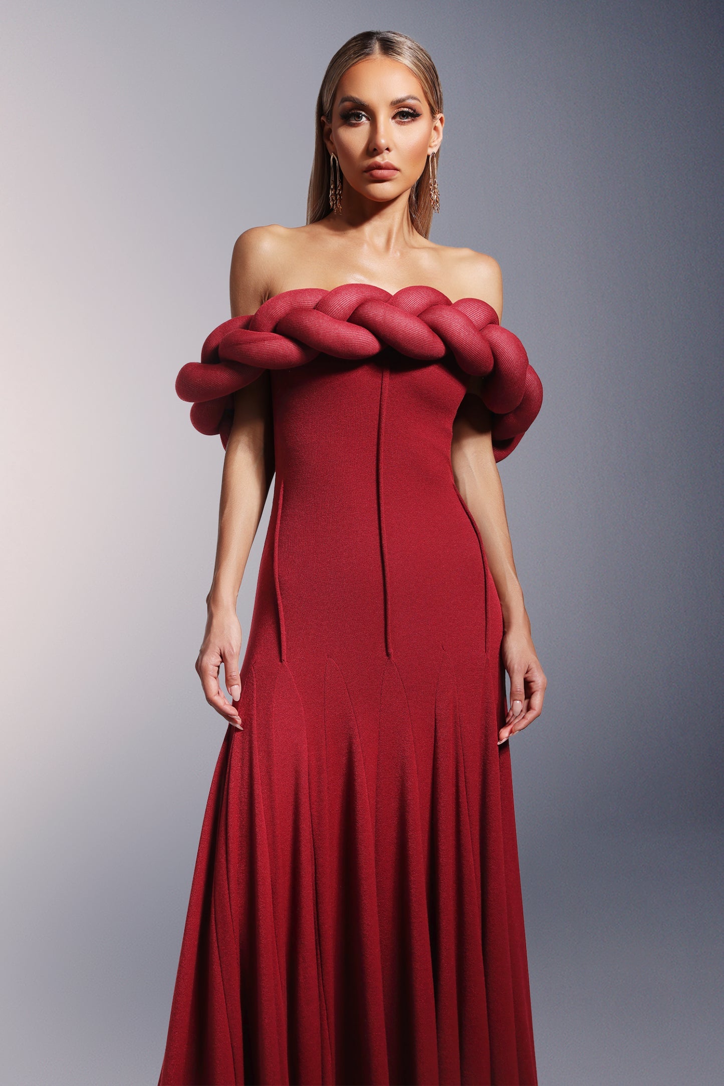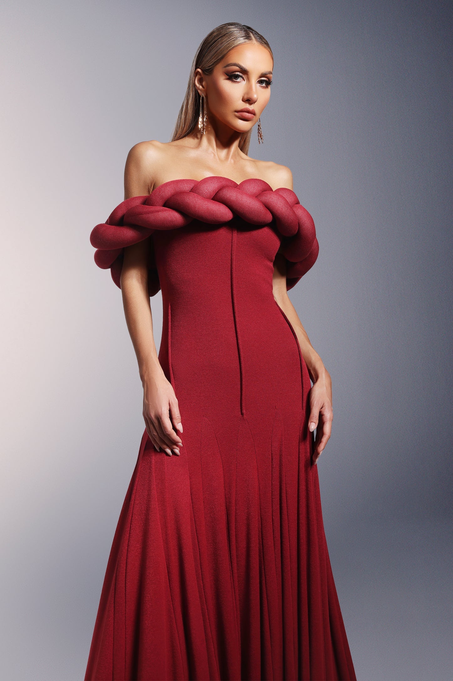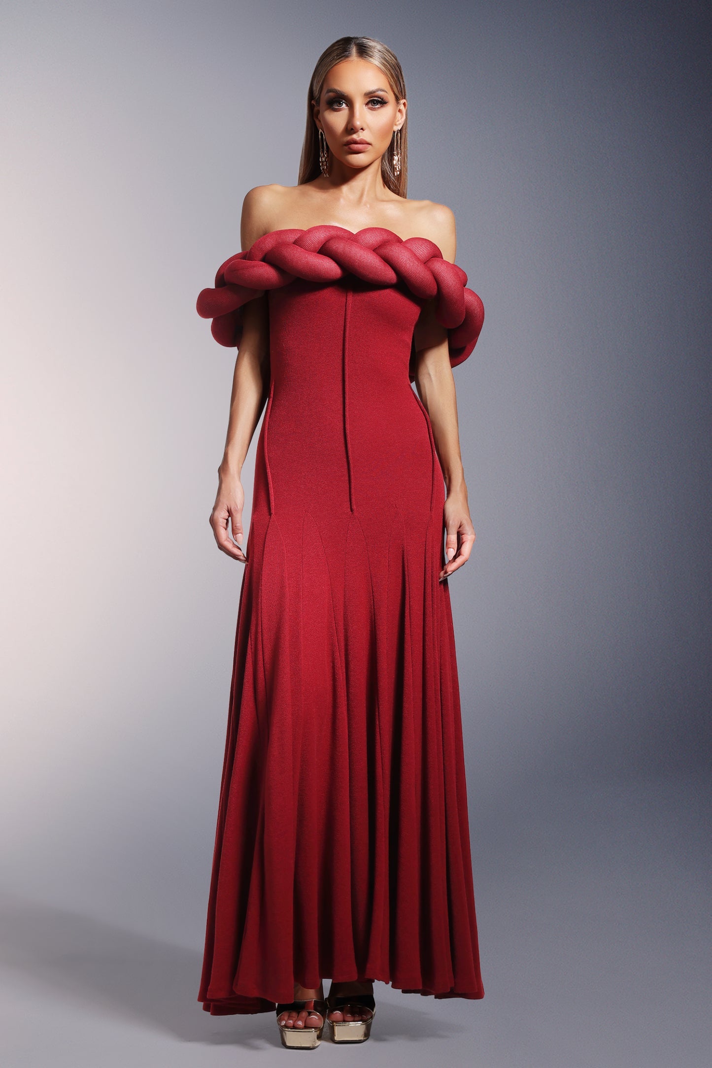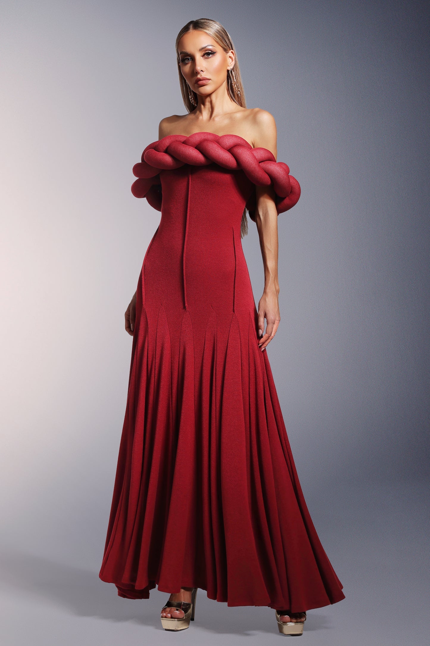 Omuzları Açık Uzun Elbise