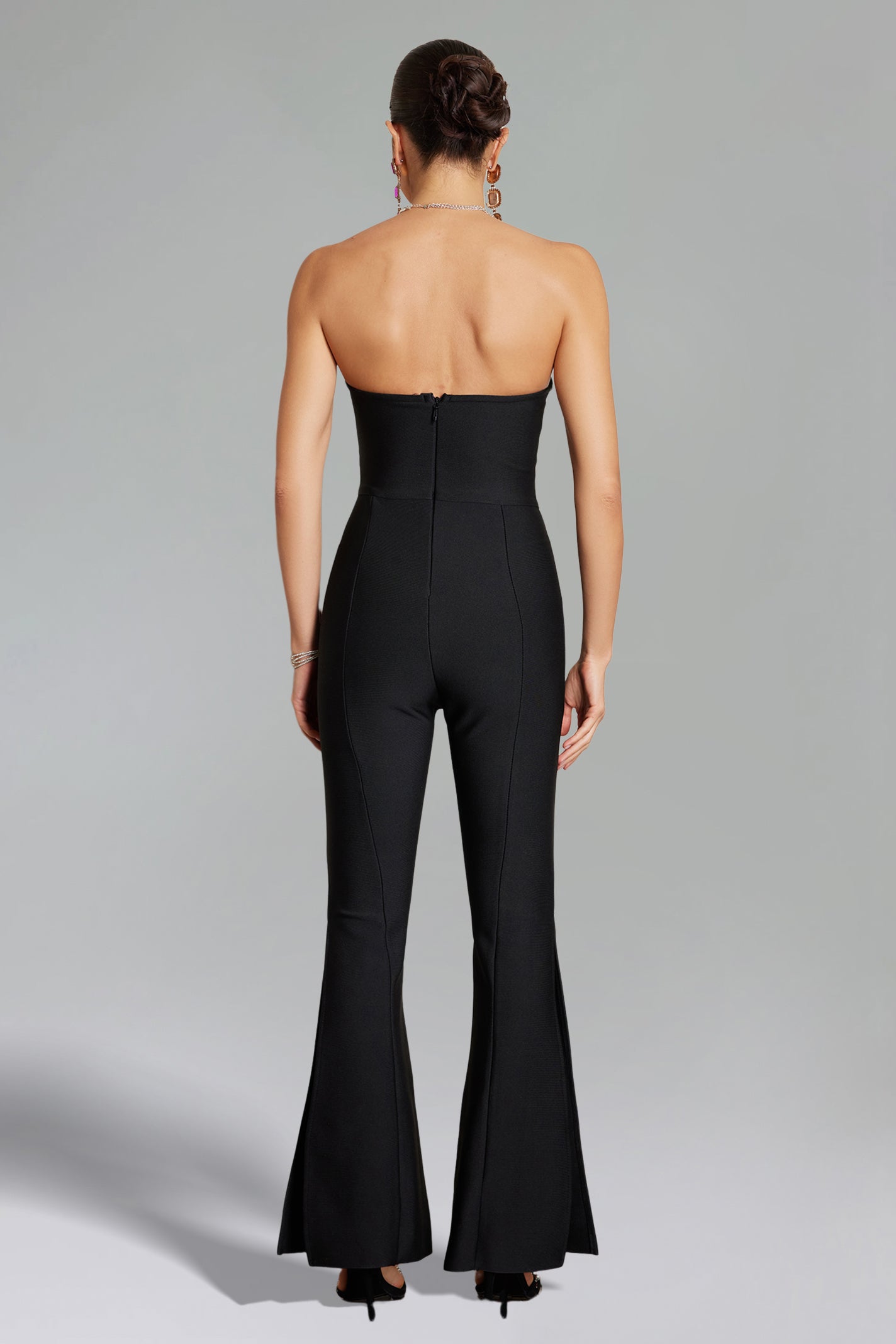 Çiçek Desenli Straplez Yırtmaçlı Tulum ile zarafetinizi konuşturun! Straplez üst kısmı üç boyutlu çiçek detayları ile süslenmiş bu tulum, bacakta yer alan cesur yırtmaç ile modern ve şık bir görünüm sunar. Şık davetler için ideal olan bu ürünü, dikkat çekici küpeler ve şık siyah topuklu ayakkabılarla tamamlayarak sofistike cazibenizi ön plana çıkarın. Modelimiz S beden giymektedir. Renk, resimlerdeki aydınlatma nedeniyle farklılık gösterebilir. Ürün beden tablosuna uygun kesimde olup, en iyi uyumu için beden tablomuza göz atmanızı öneririz.