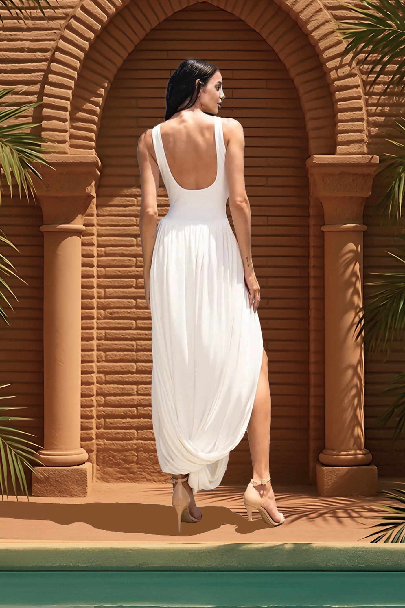 Yandan Yırtmaçlı Drapeli Maksi Elbise