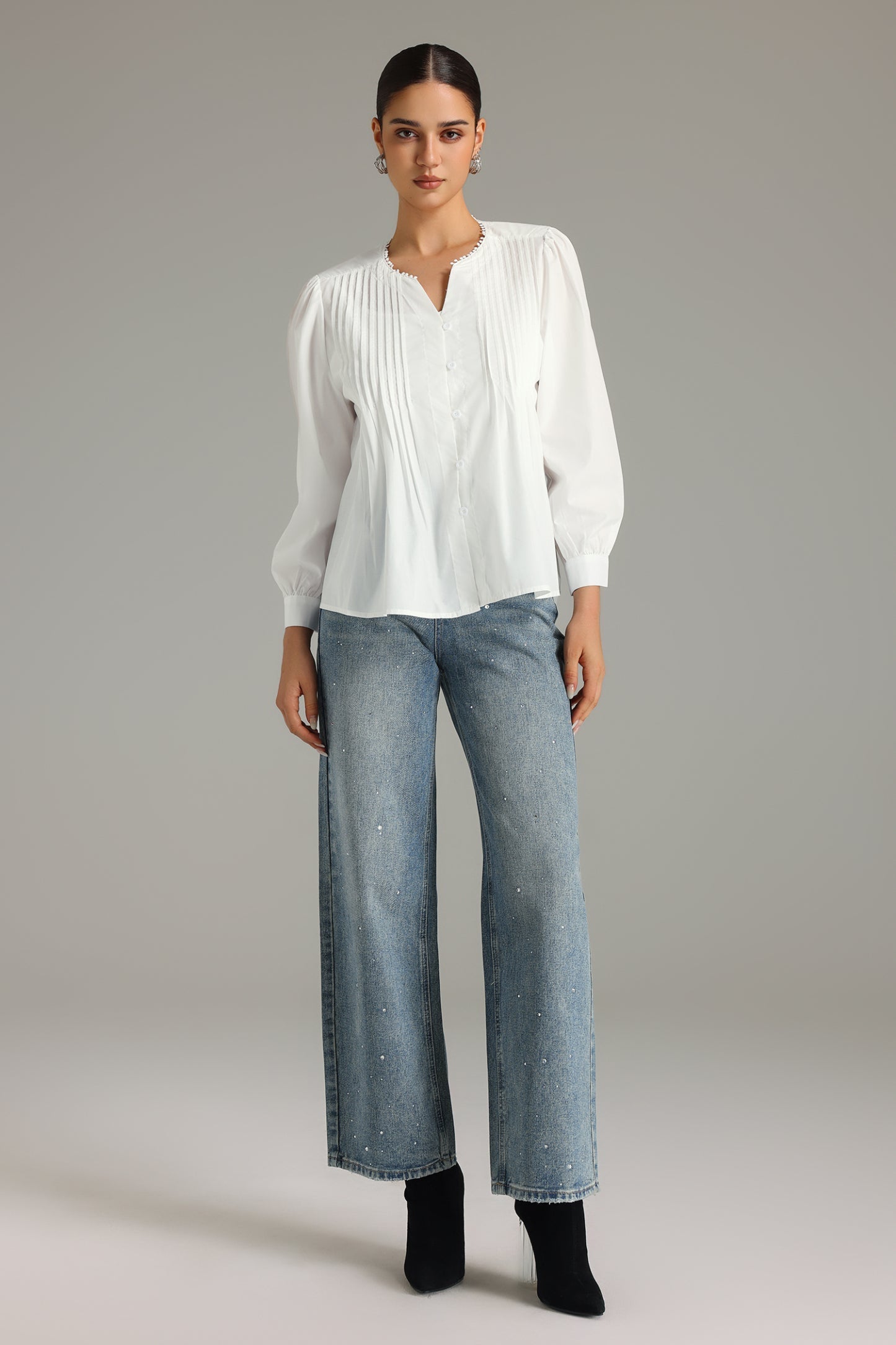 Yasir Pileli Uzun Kollu Gömlek ile tarzınızı kusursuz bir şekilde tamamlayın. Chenille kumaştan üretilen bu gömlek, yumuşacık dokusu ve dayanıklı yapısı ile gardırobunuzun vazgeçilmez bir parçası olacak. Özgün pile detayları ve uzun kolları ile hem gündüz hem de gece şıklığınıza şıklık katın.
