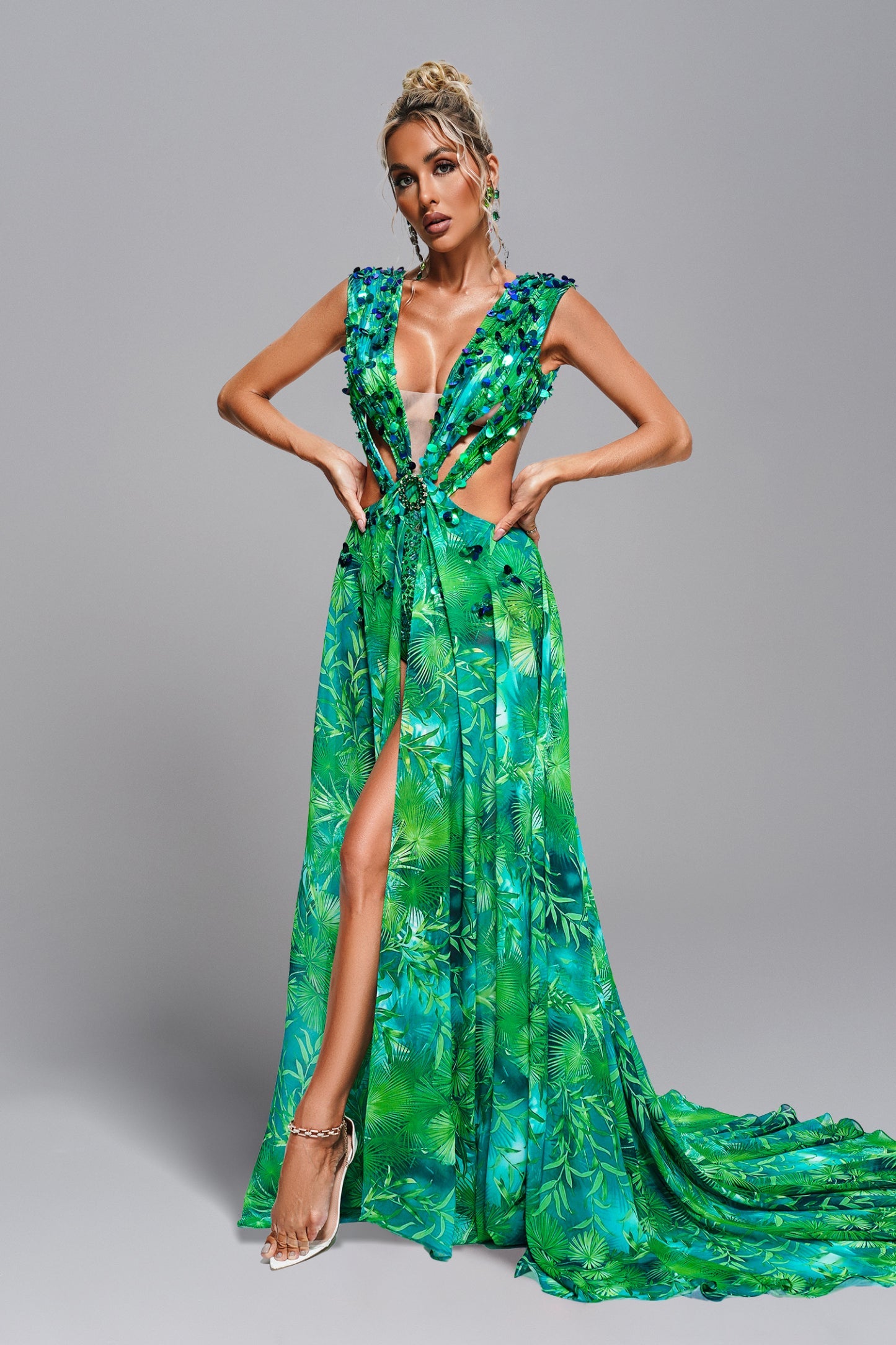 Zarafet dolu dünyaya adım atın: Yoland Taş Detaylı Maksi Elbise ile kendinizi özel gecelerin parlayan yıldızı gibi hissedin. Özel üretim olan bu elbise, ince taş işlemeleri ve delikat desenleriyle dikkat çekiyor ve her türlü özel davet veya resmi etkinlik için ideal bir seçim sunuyor. Maksi boyu, sofistike ve göz alıcı bir görünüm kazandırarak sizi olağanüstü kılar, sırt dekolteli tasarımı ise zarif bir şehvet katıyor.