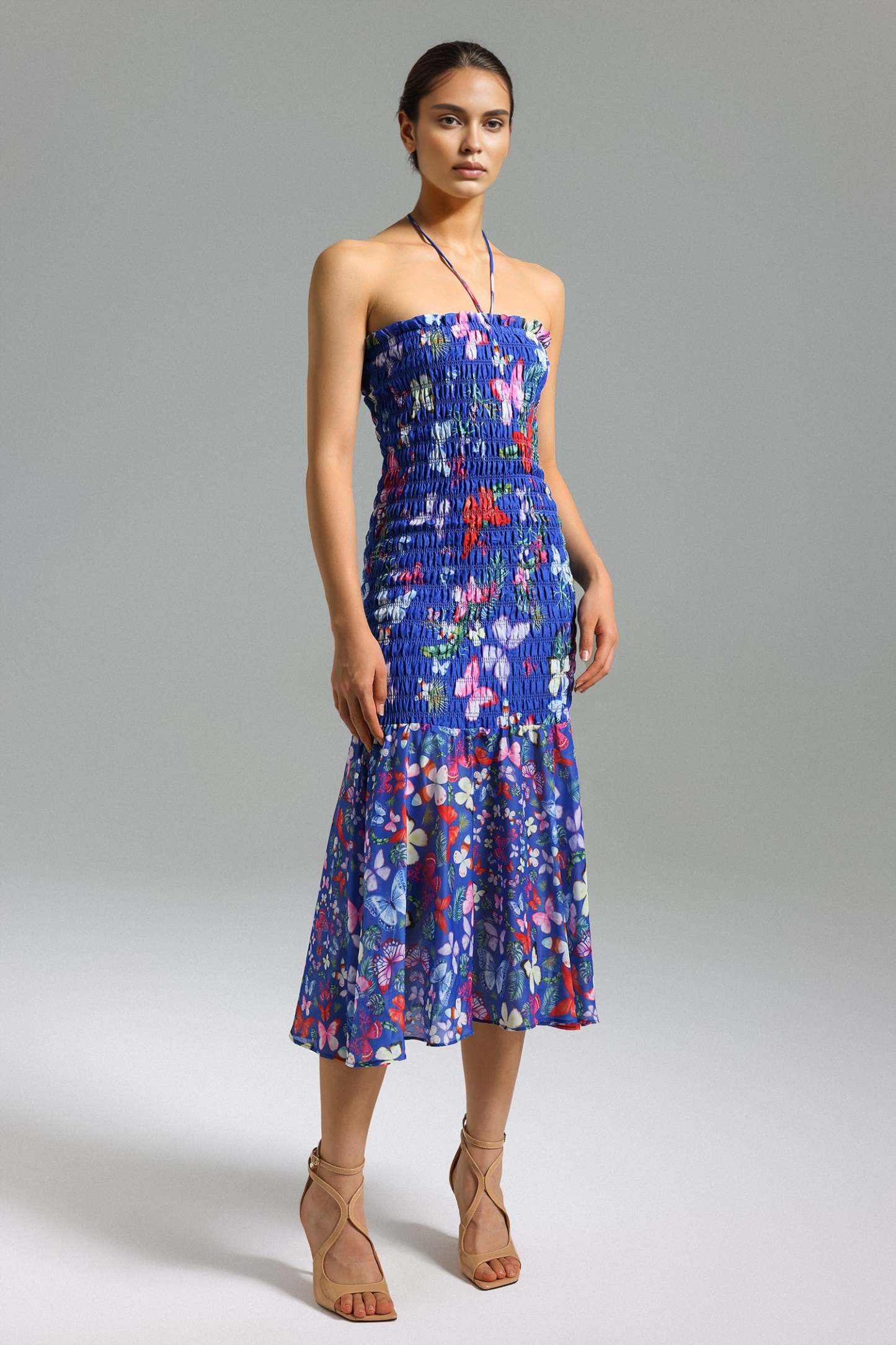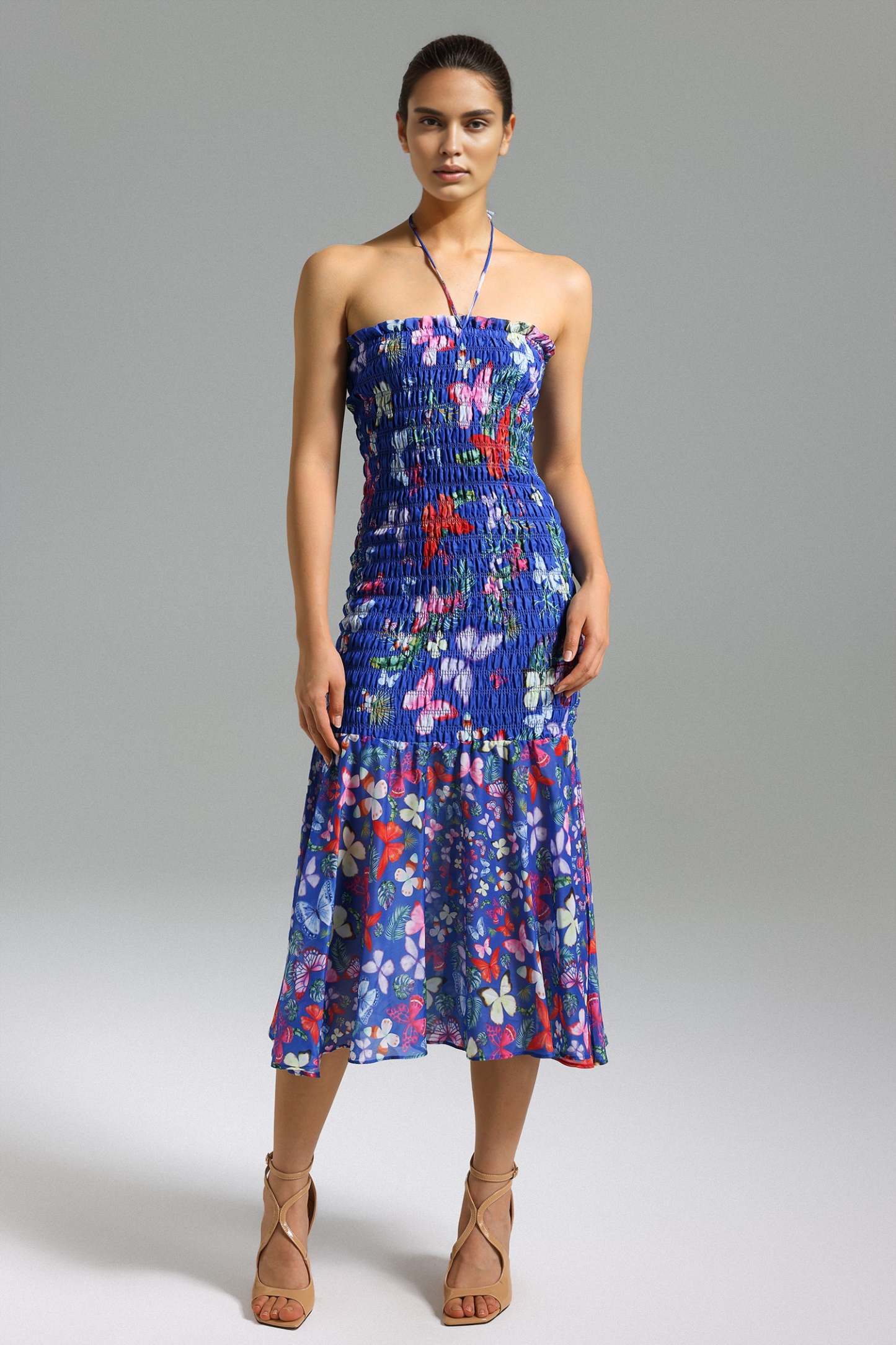 Yoli Mavi Baskılı Geniş Midi Elbise, gardırobunuzdaki zamansız parçalardan biri olmaya aday. Özel üretim bu elbise, geniş kesimi ve midi boyuyla hem rahatlığı hem de şıklığı bir arada sunuyor. Mavi tonlarındaki sofistike baskılar, her türlü davet veya günlük kullanım için uygun bir tercih yapıyor.