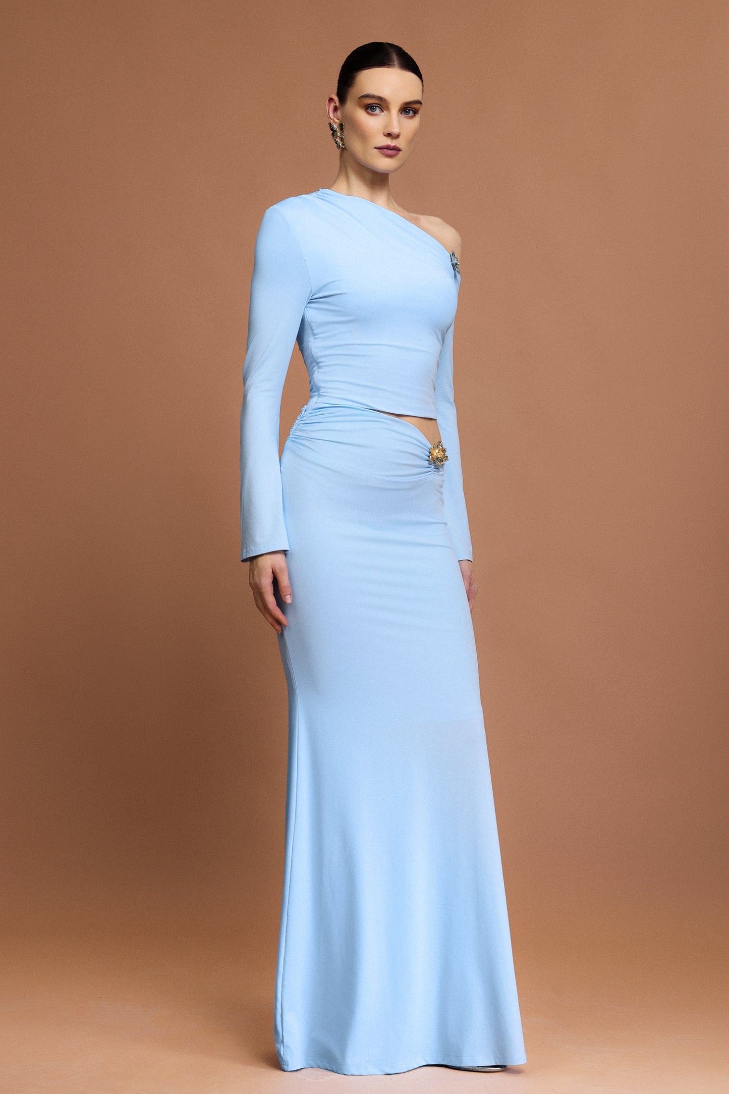 Bu nefes kesen tasarımıyla, vücut hatlarınızı nazikçe sararak dikkat çeken elbise, her türlü etkinlikte göz alıcı bir siluet yaratır. Özel üretim olan bu elbisenin kumaşı, mükemmel bir uyum ve konfor sunar. Modelimiz S beden giymekte olup, boyu 178 cm, göğüs 85 cm, bel 60 cm, kalça 90 cm ölçülerindedir.